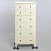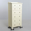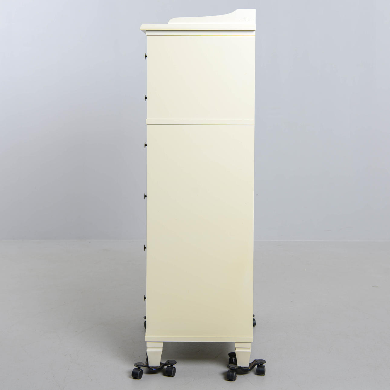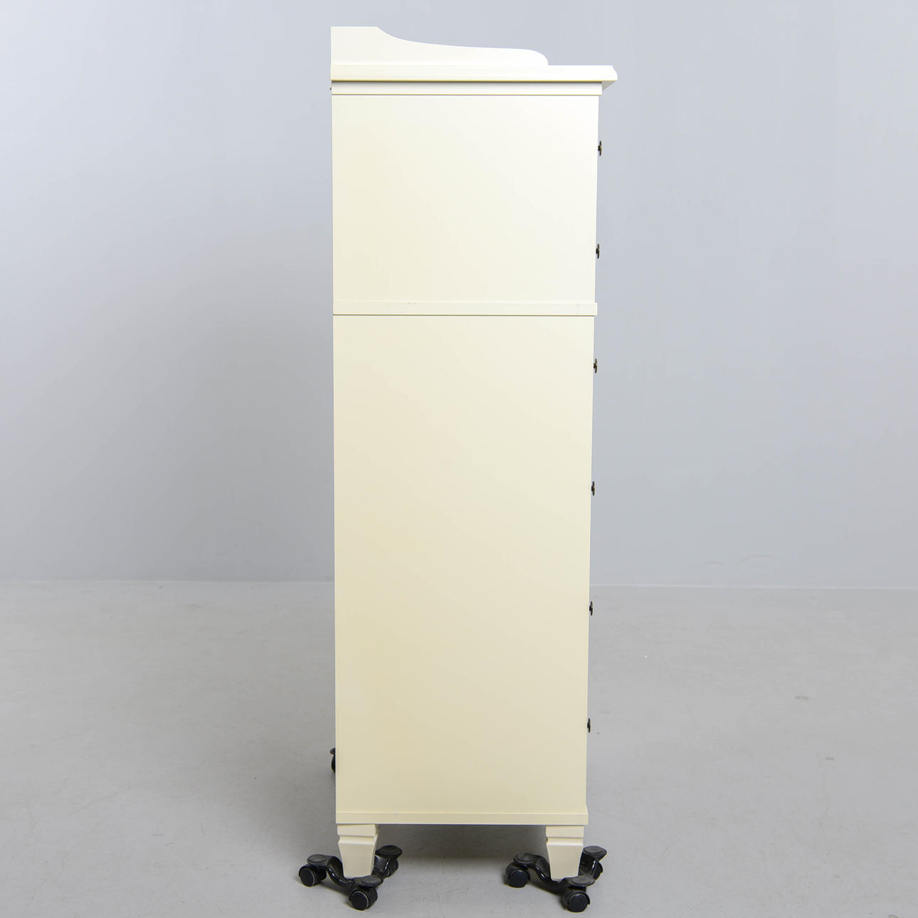 6 lådor. Märkt "Wilma" på gavel upptill. Bredd 64, djup 42, höjd 133 cm.
