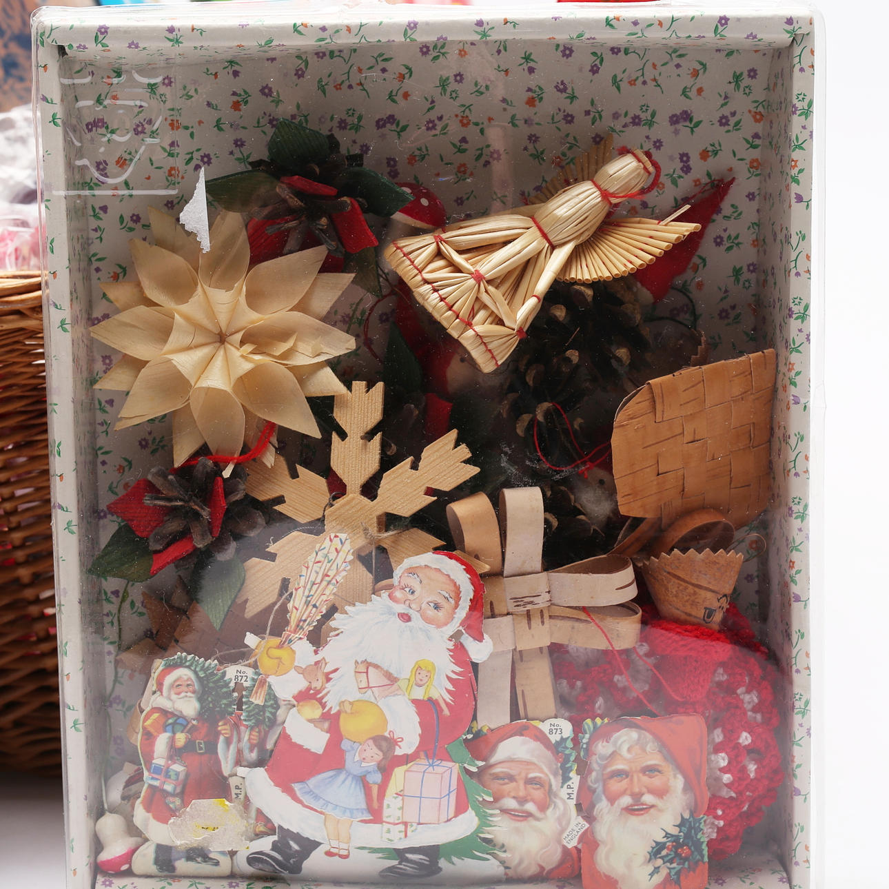 Bl.a. tomtar och julgranspynt.