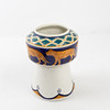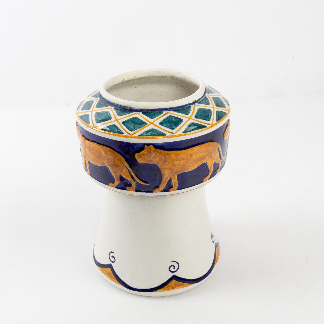 Mynningen lagad, övre del av vas saknas. retuscherad.