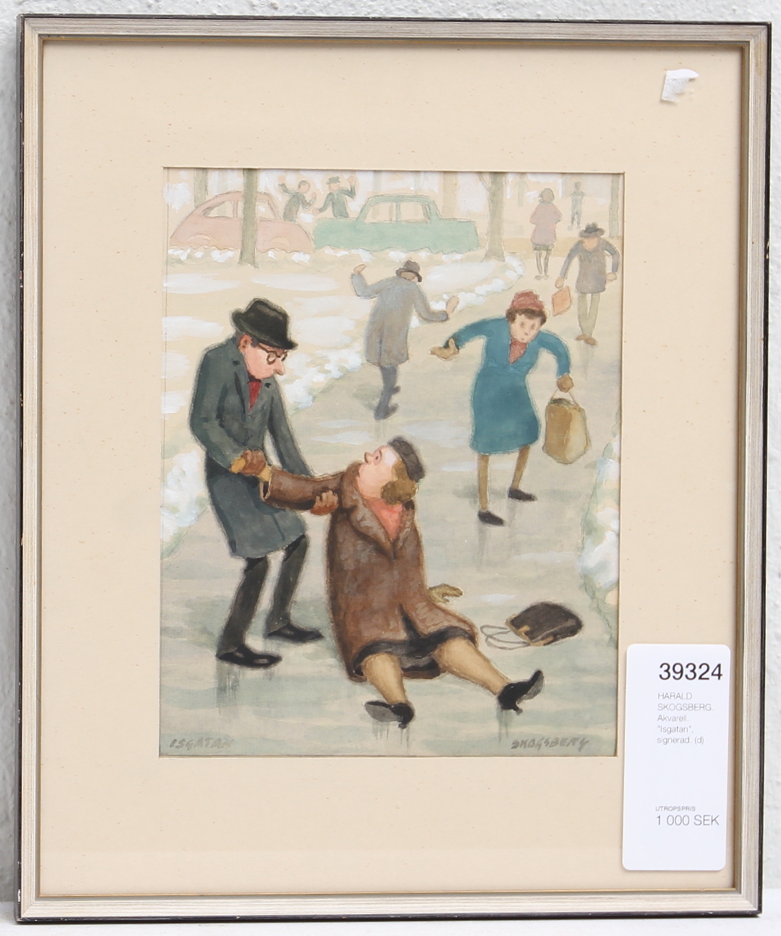 39324. HARALD SKOGSBERG. Akvarell. "Isgatan", signerad.