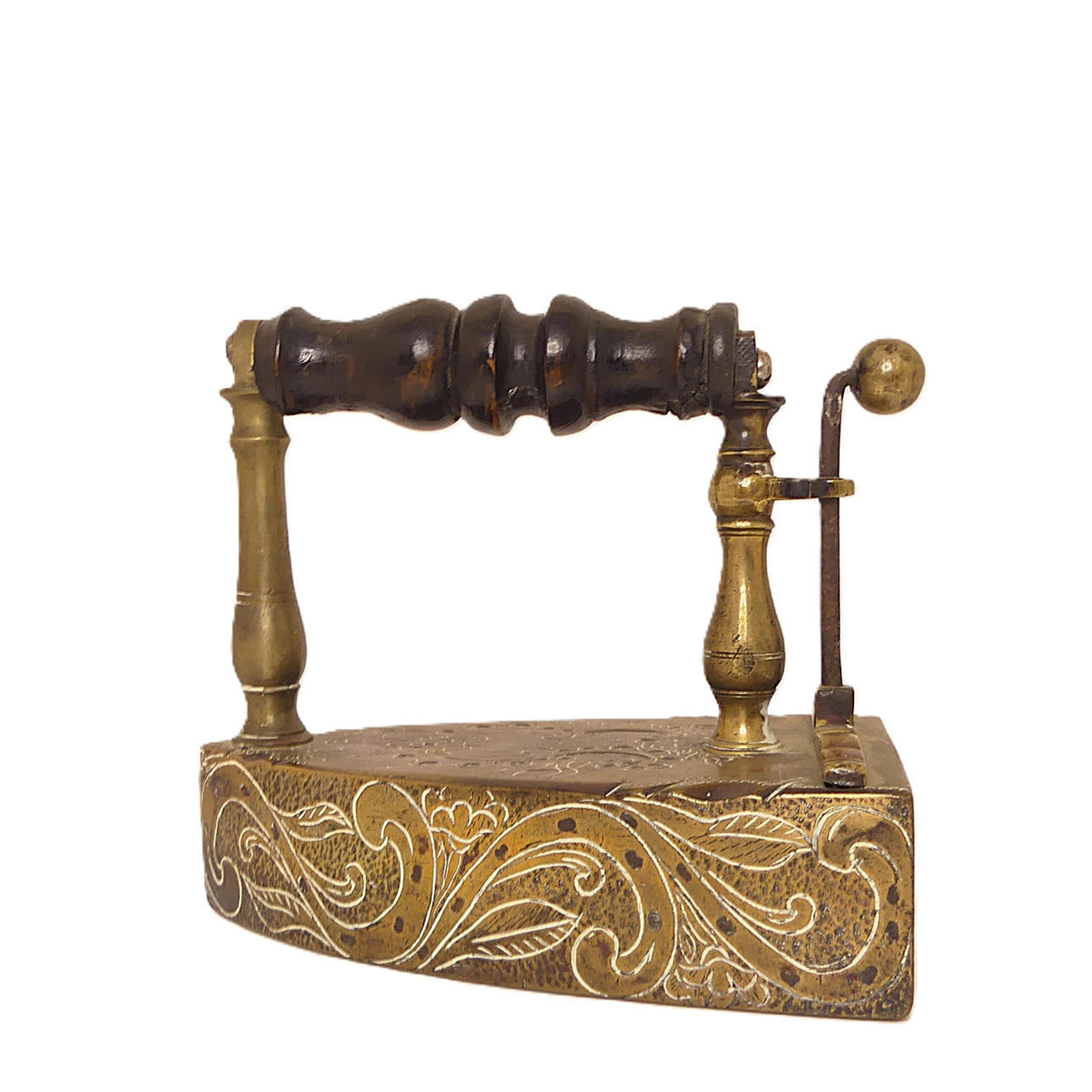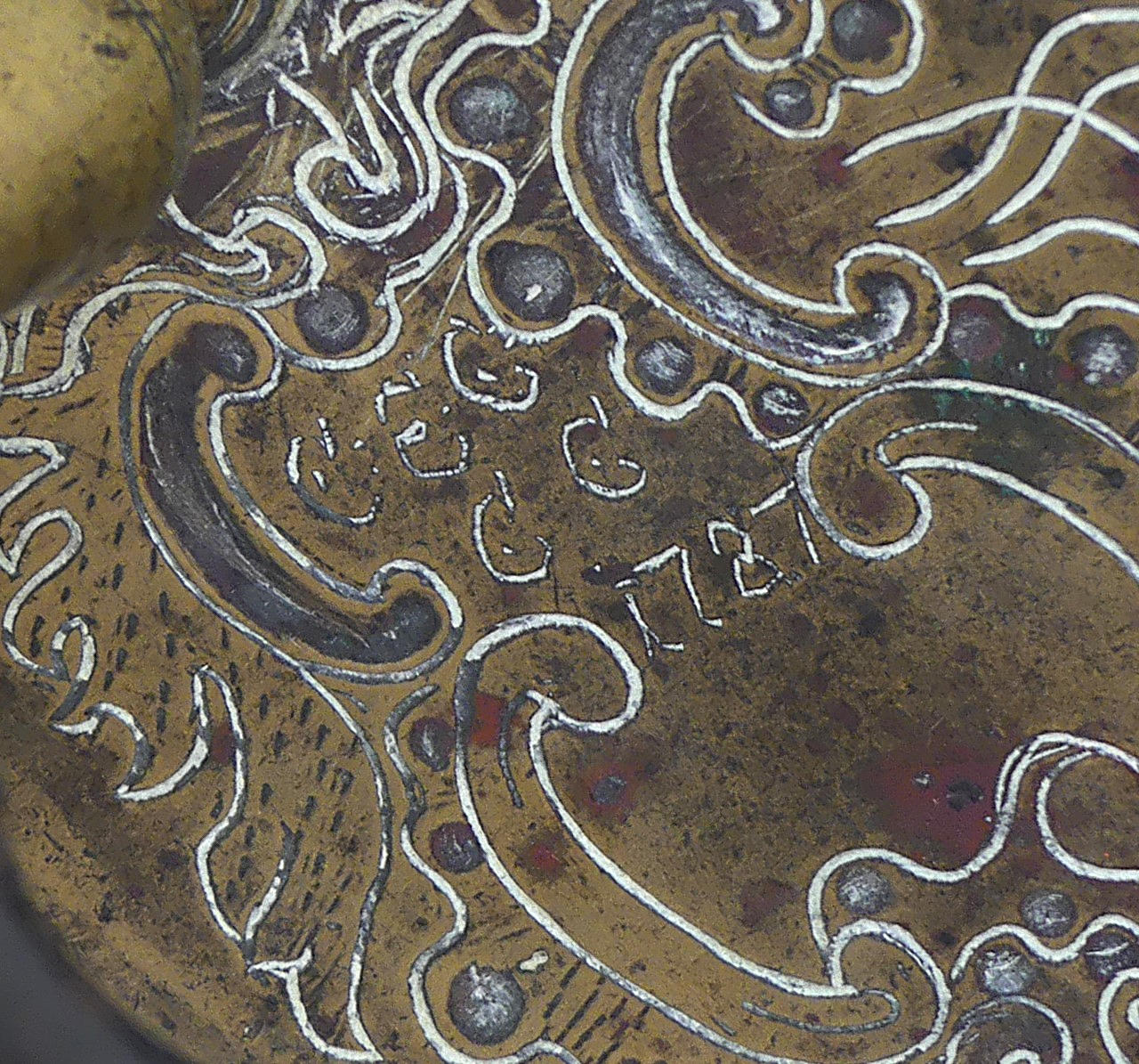 Handtag i trä skadat, putsmedelsrester, åldersrelaterat slitage.