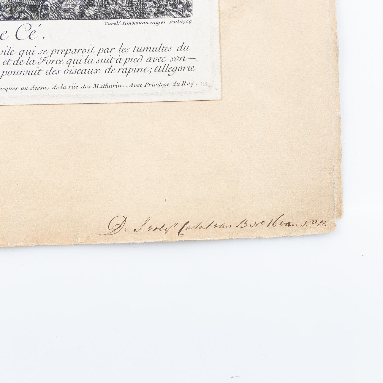 I. Audran Sculpsit (Jean Audran 1667-1756), gravör.