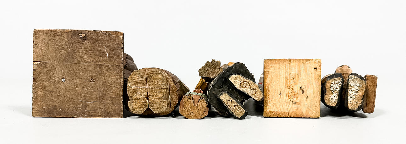3935907. FIGURINER, 6 st, trä, delvis signerade.
