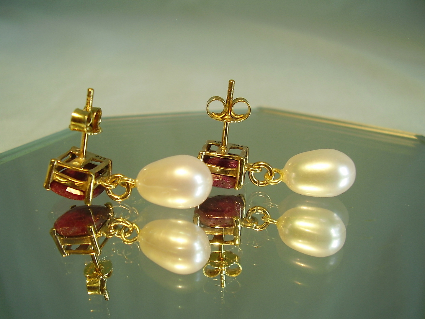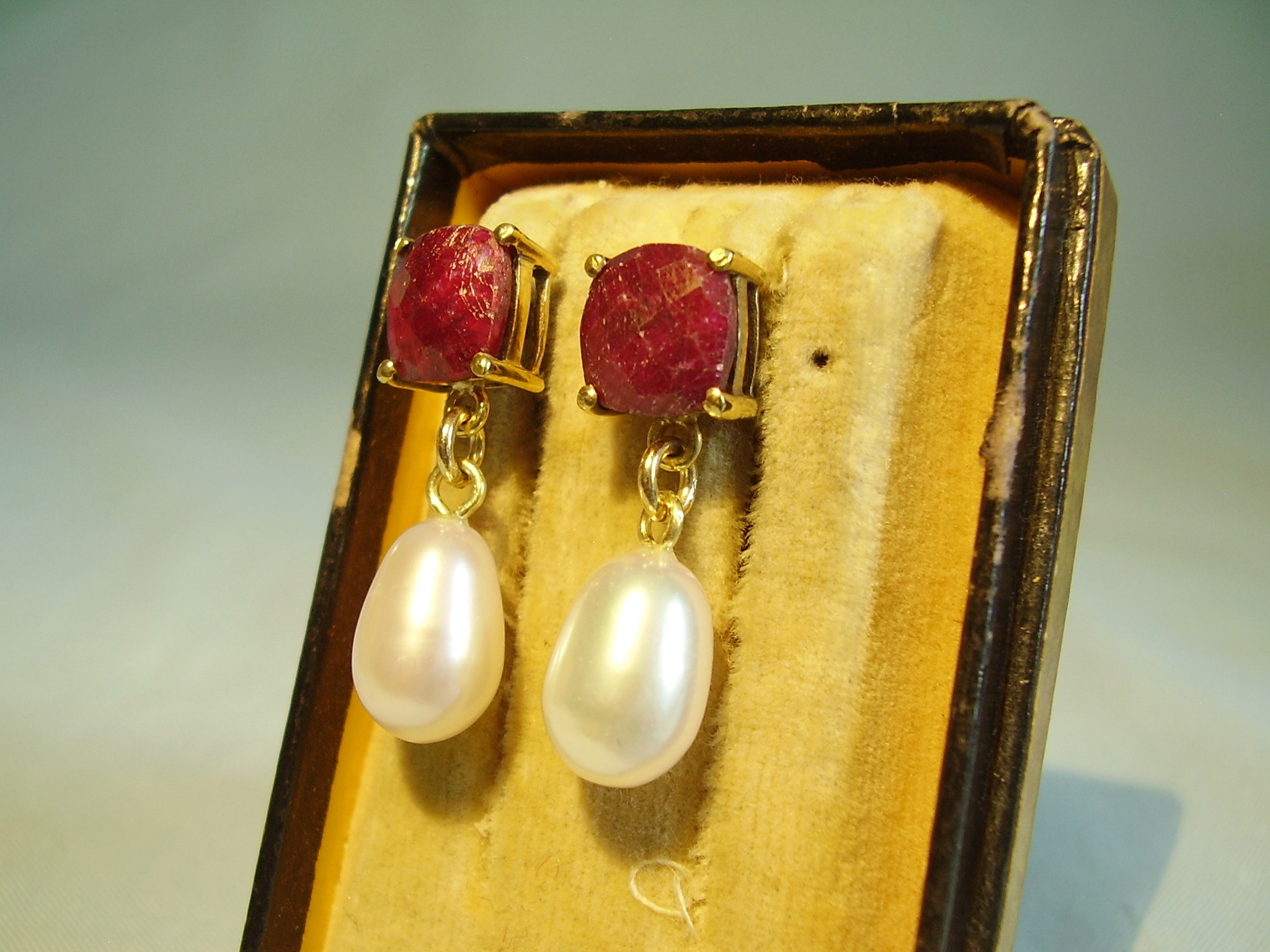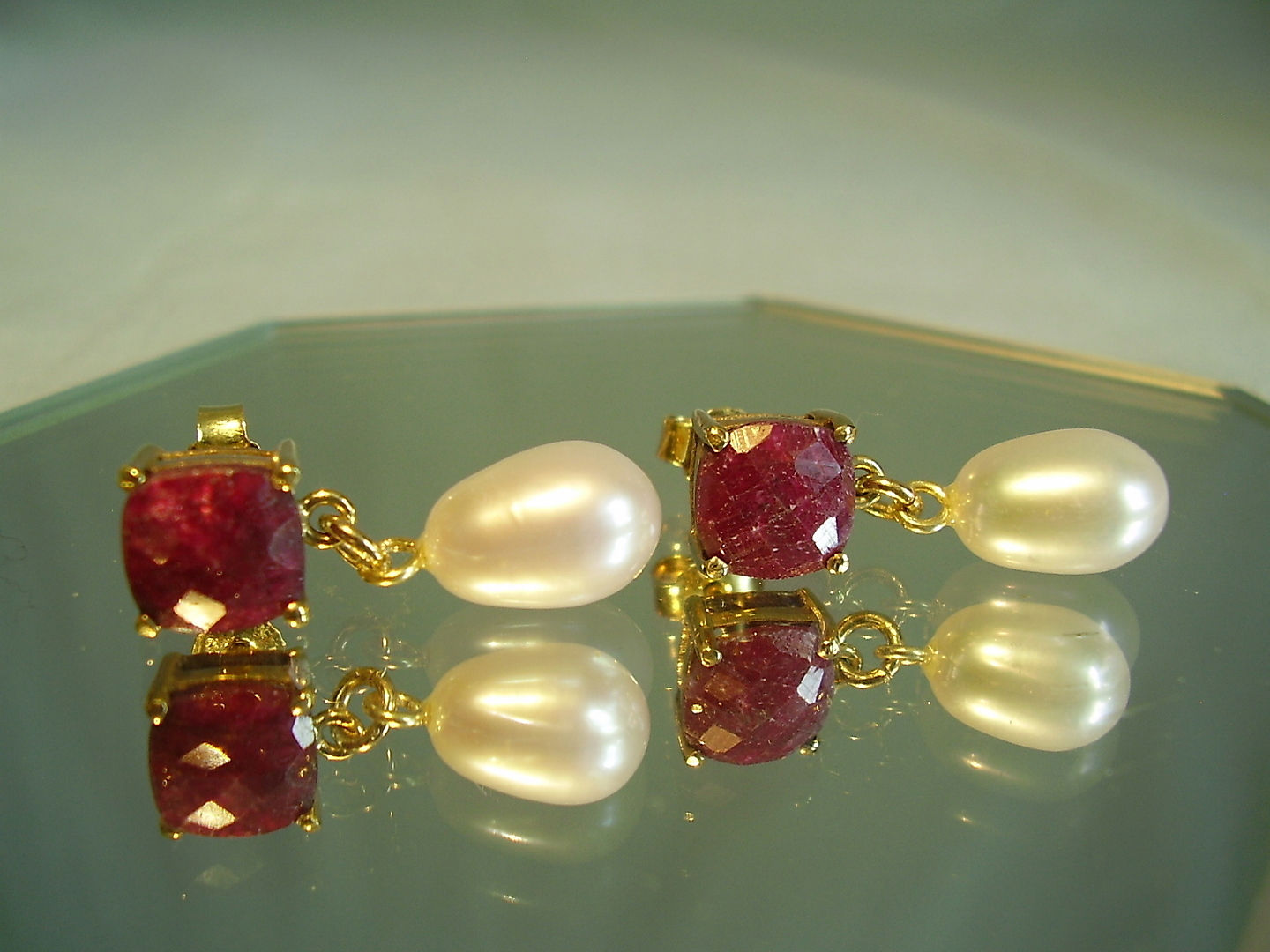 393599. RUBY ÖRON DUBBAR MED RIKTIGA PÄRLOR.