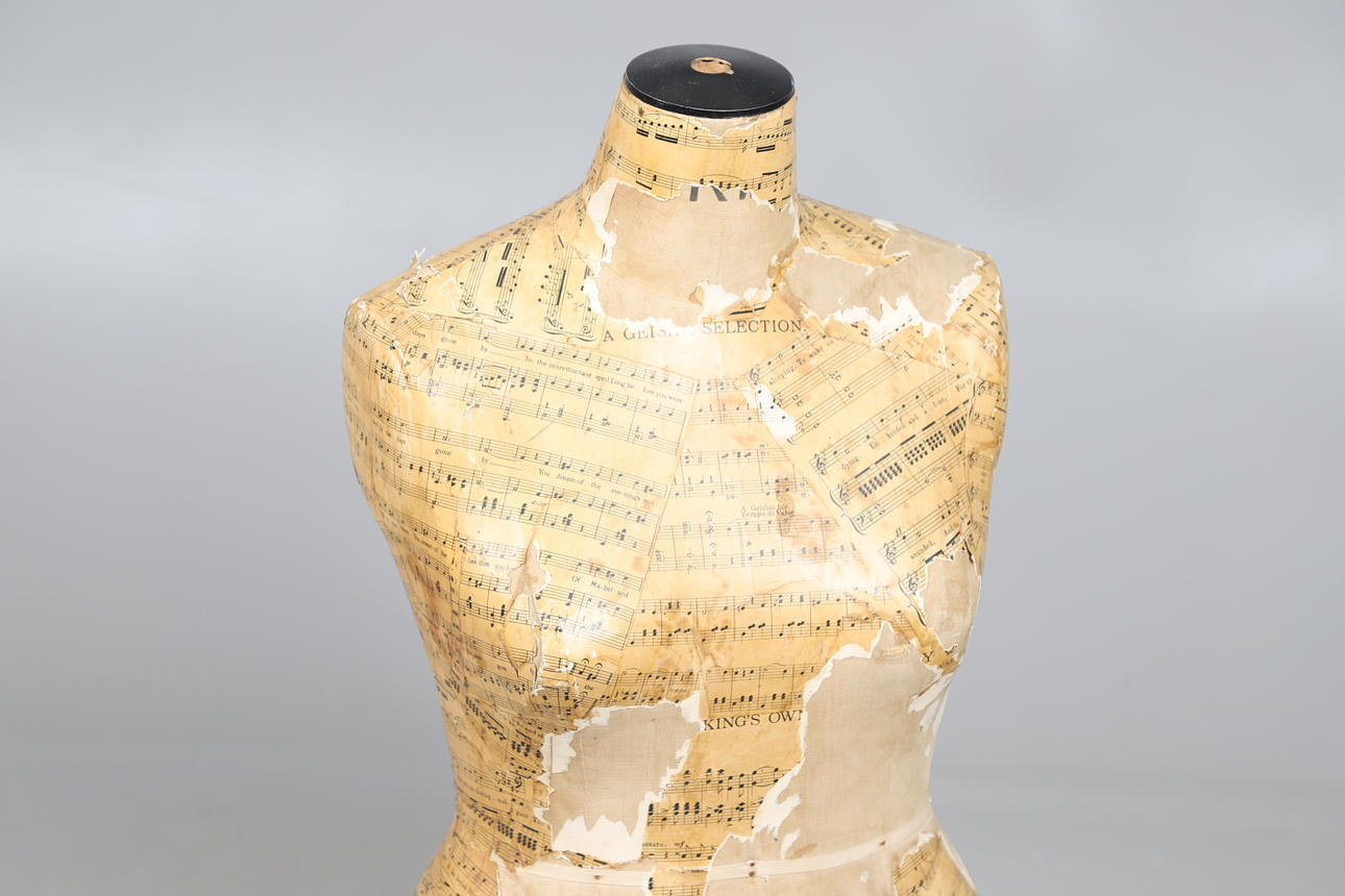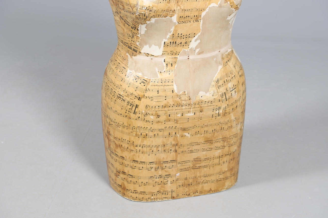 delvis täckt med noter, 88 cm hög x 38 cm bred.