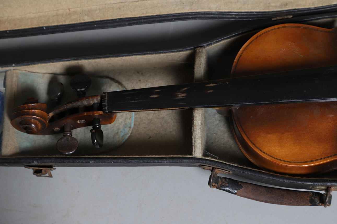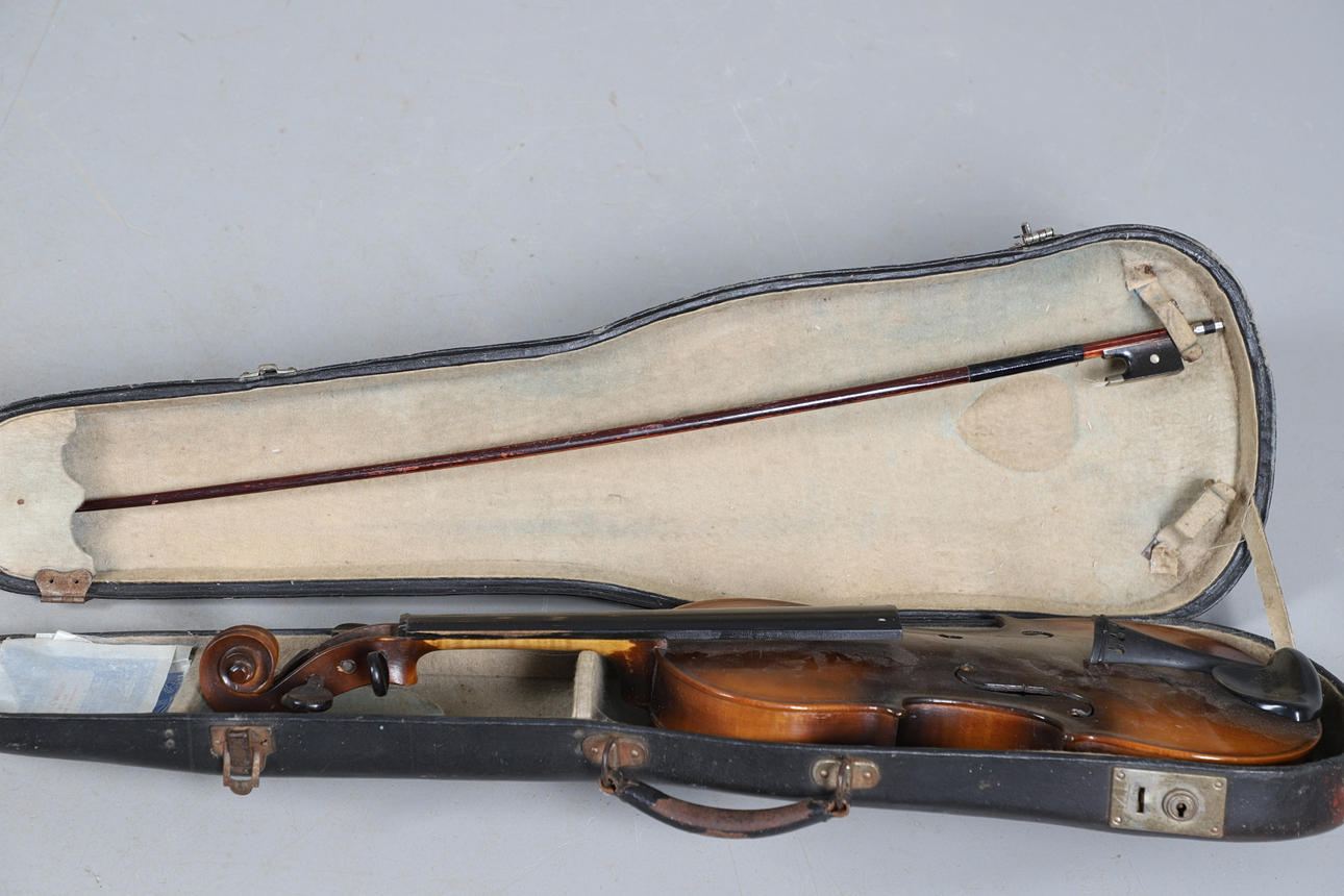 Violin - behöver strängning, ytslitage på nacken. Båge - behöver stränga, ytslitage för att lackera.