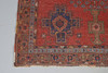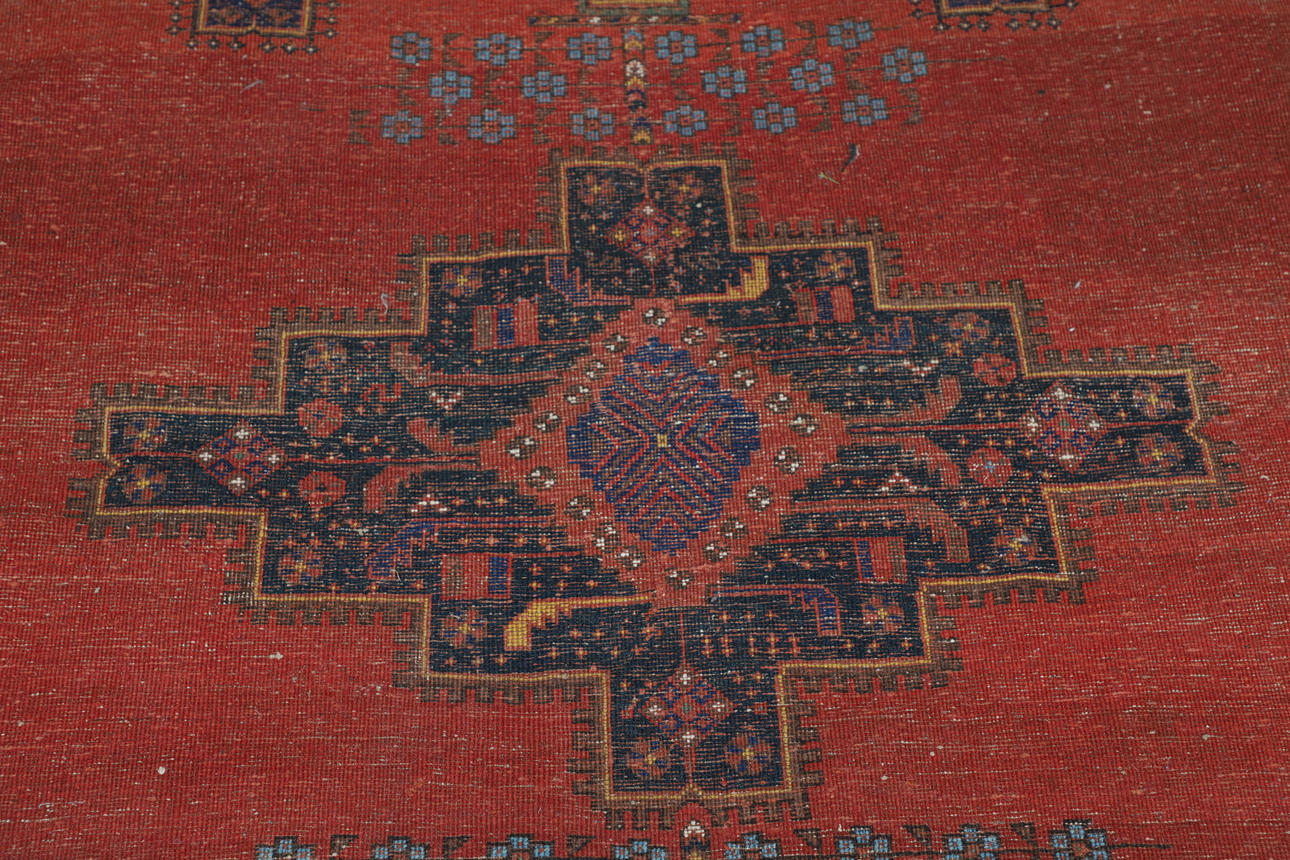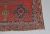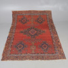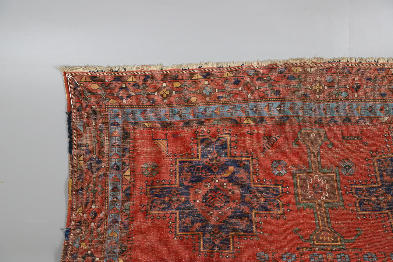 Maddern filad med fem trappstegade medaljonger inneslutna av gränser av geometriska motiv, 190cm x 142cm.