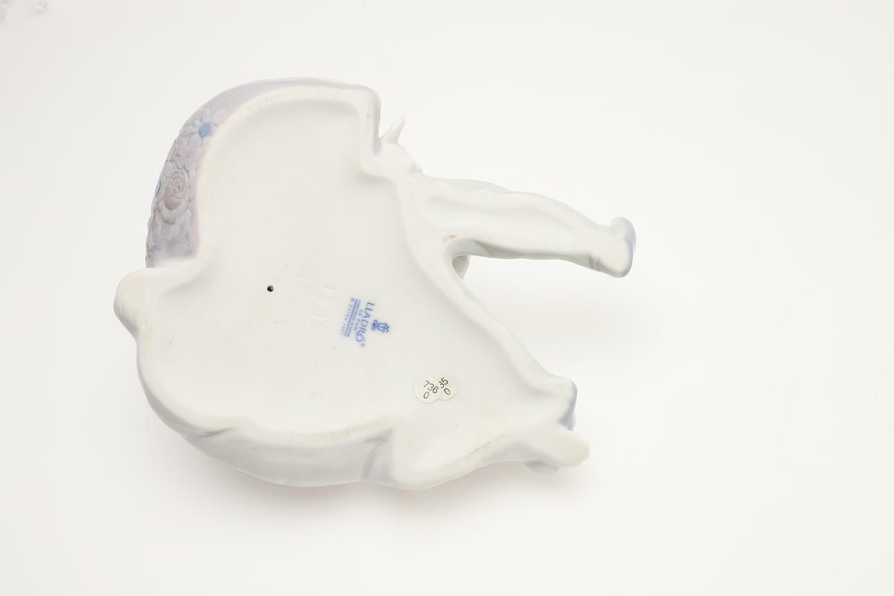 Två föremål inklusive Sweet Dreams, en pojke som håller valpar mellan armarna och sin hund vid sin sida, modell nr 1535 (ca 14 cm bred). Även med en Lladro-grupp på tre grisar, 'Lekfulla grisar' (17 cm i diameter). (2).