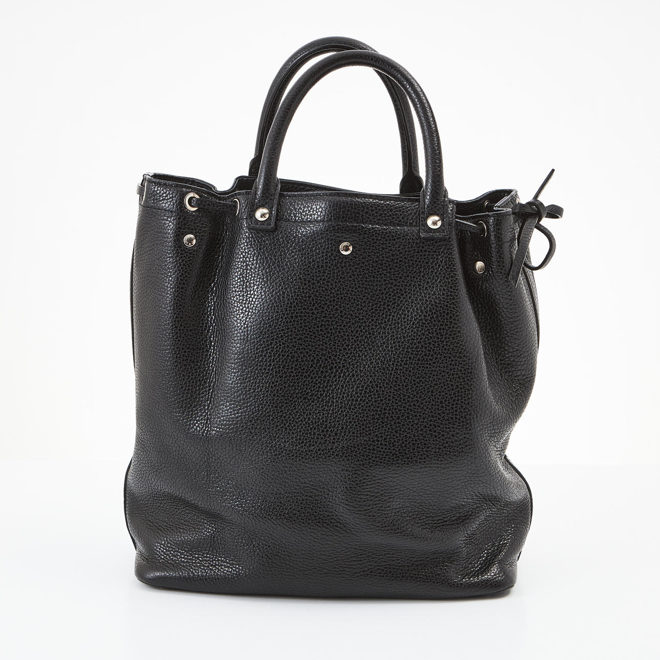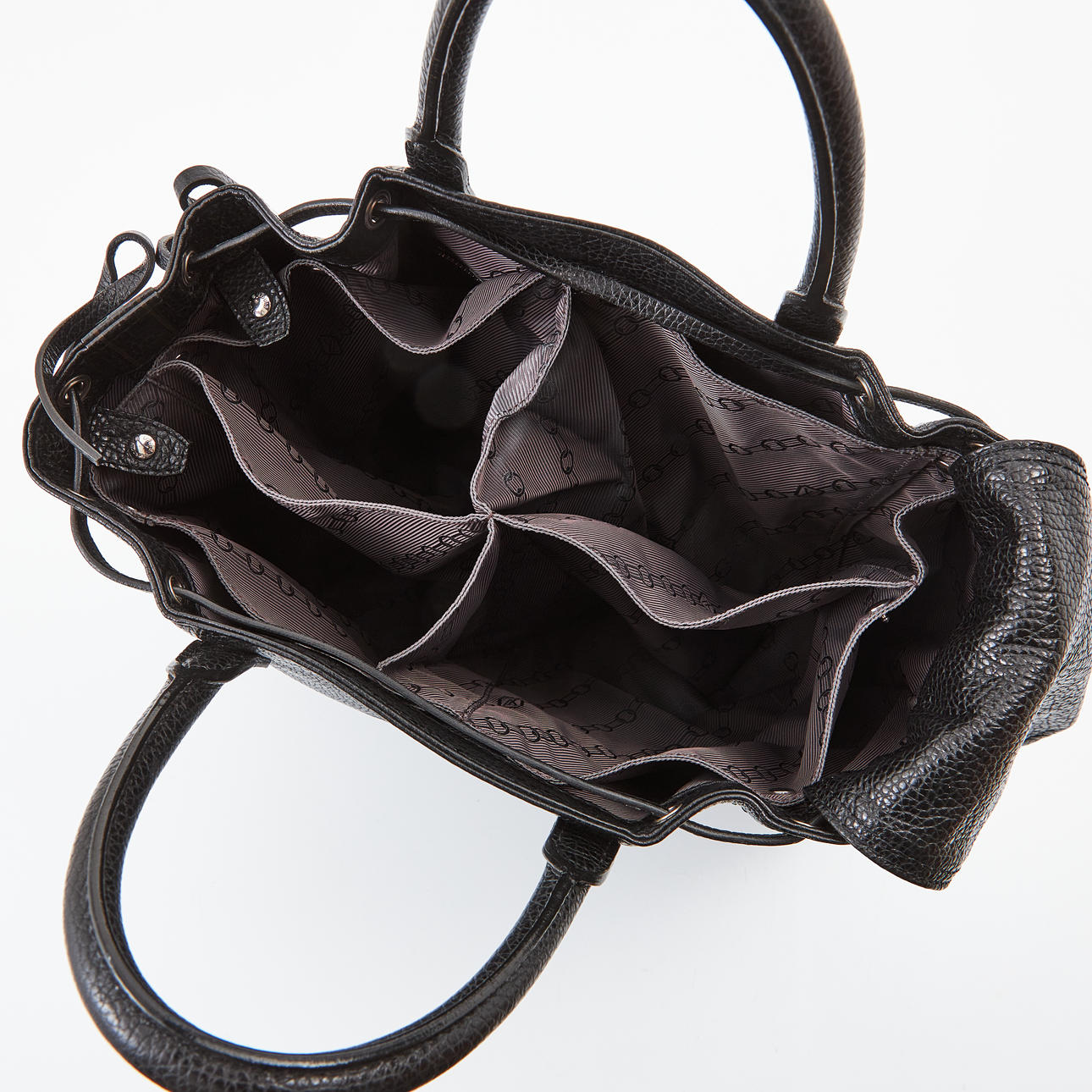 Svart präglad skinn med ljusbrunt tryck på framsidan, detaljer i vitmetall, snörning på sidorna, lilablått foder i textil, invändigt en ficka med dragkedja, märkt "Louis Vuitton Paris made in France", datummärkt 2004 Frankrike, löstagbar avdelare för skor medföljer, mått ca 42x33x18cm.
