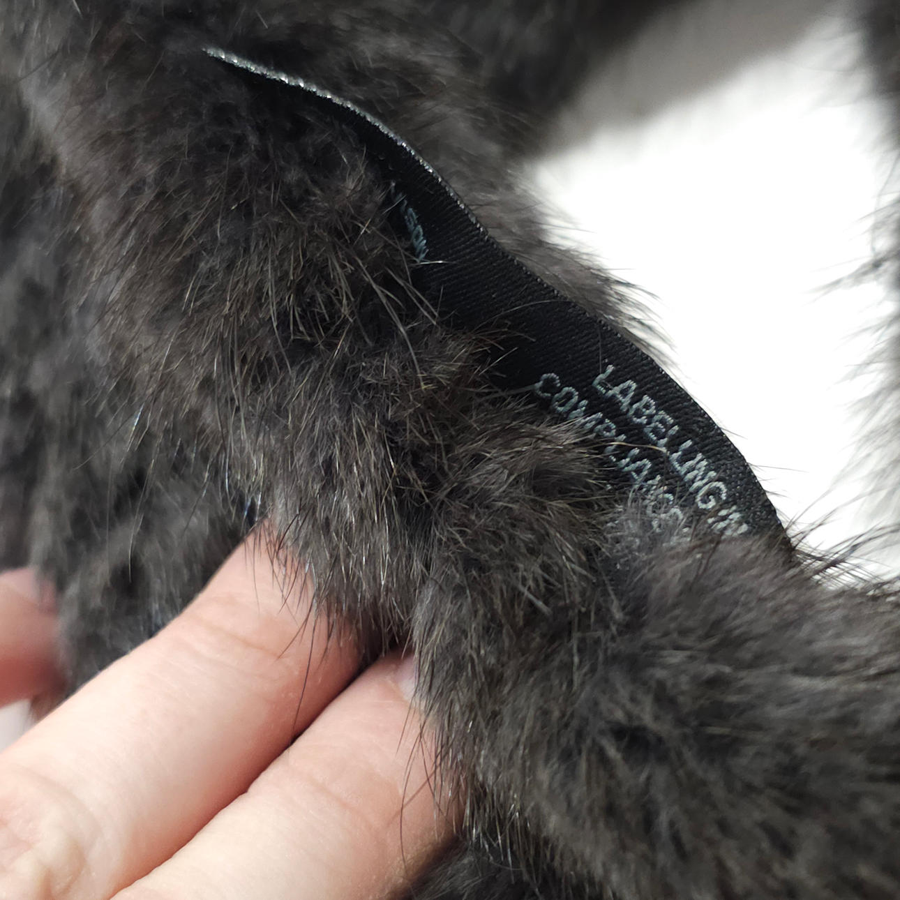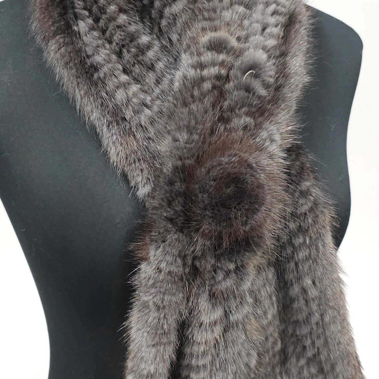 3942250. ANTRACITFÄRGAD FLÄTAD MINK HALSDUK.