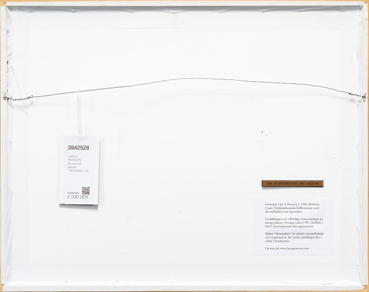 3942528. LARS A PERSSON. Akvarell på papper, "Hemtrakter".