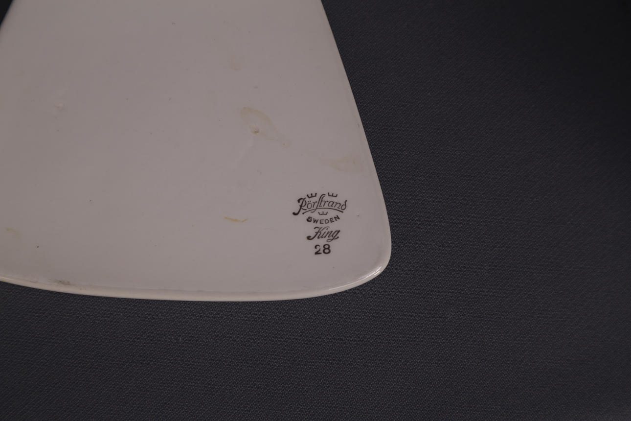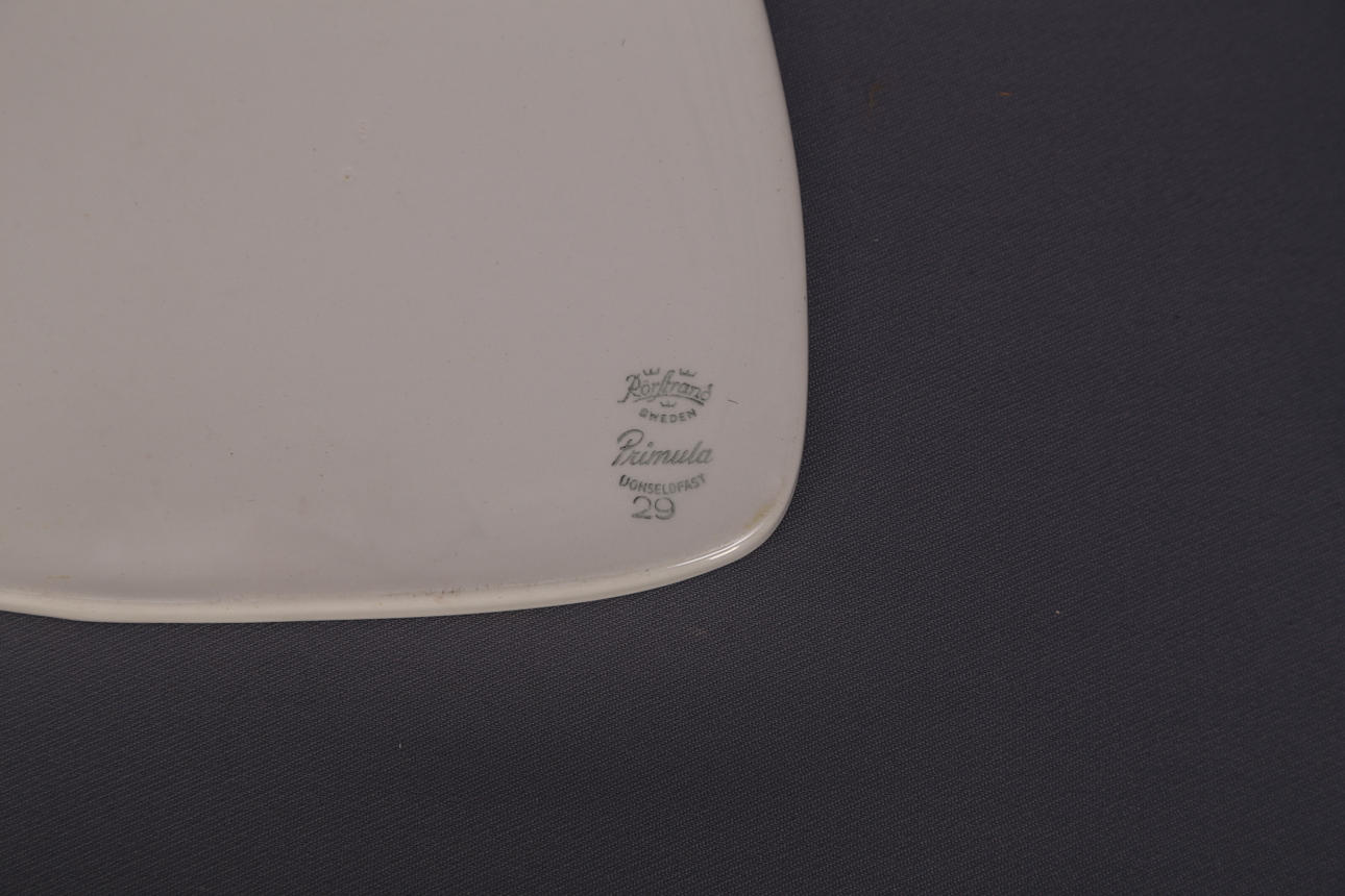 Uppläggningsfat, 42 x 22 cm, signerad PvF, dekor med hönor.