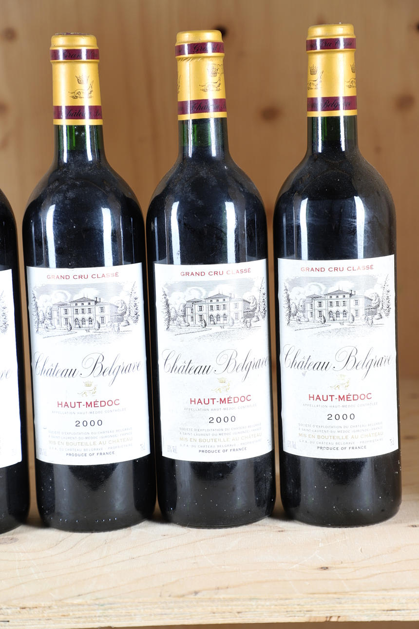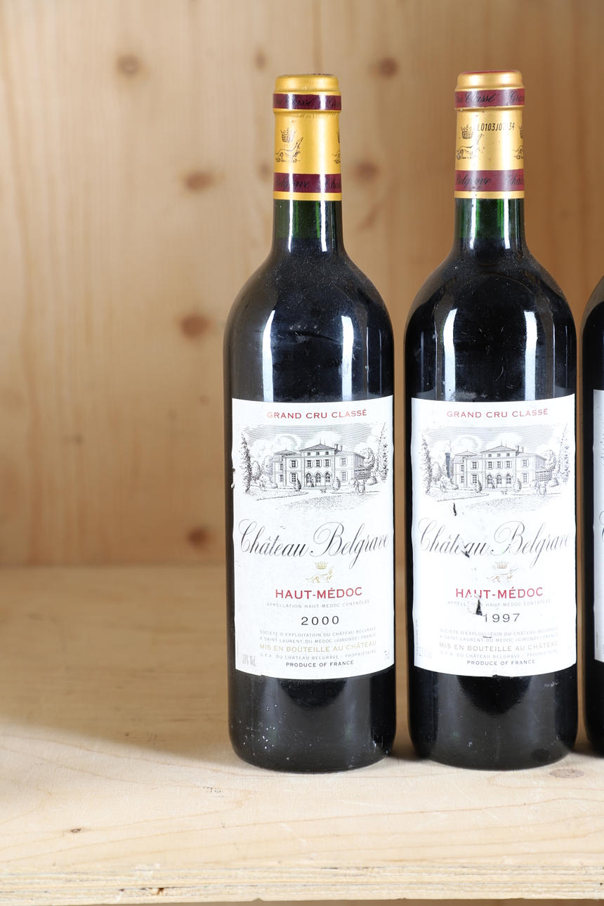 3945050. 4 FLASKOR CHATEAU BELGRAVE HAUT-MÉDOC 2000 PLUS 1 FLASKA 1997.