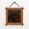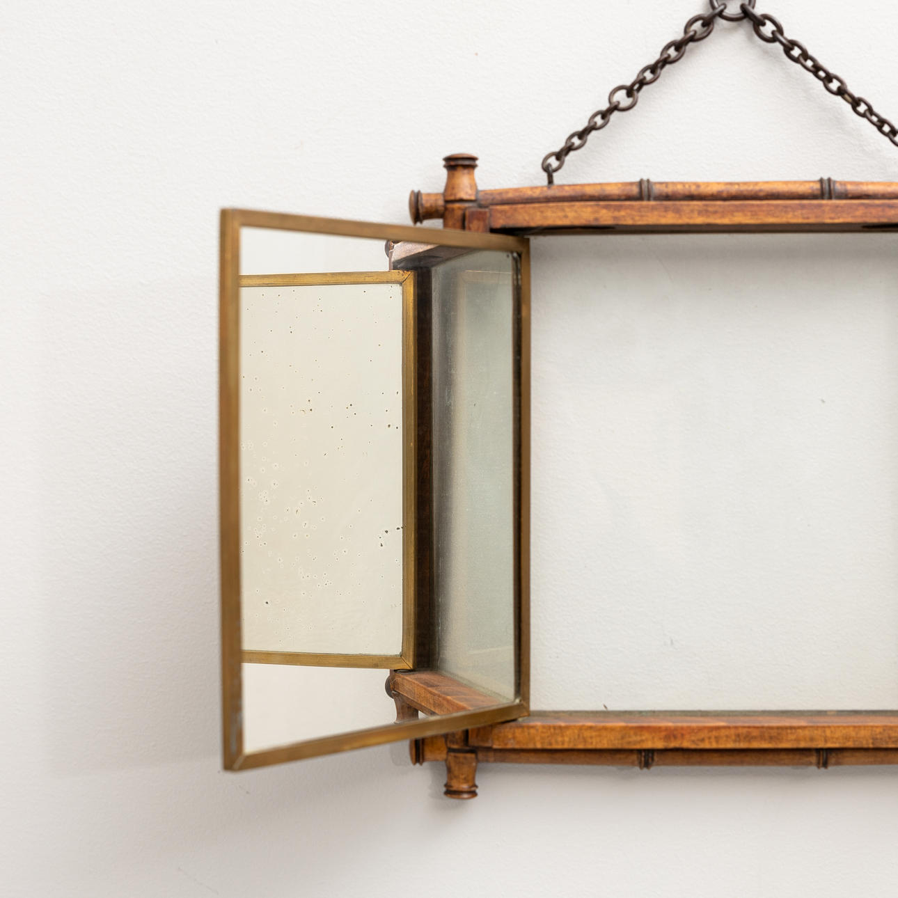 Utfällbara spegelfält med tryckt dekor. Höjd ca 27 cm.