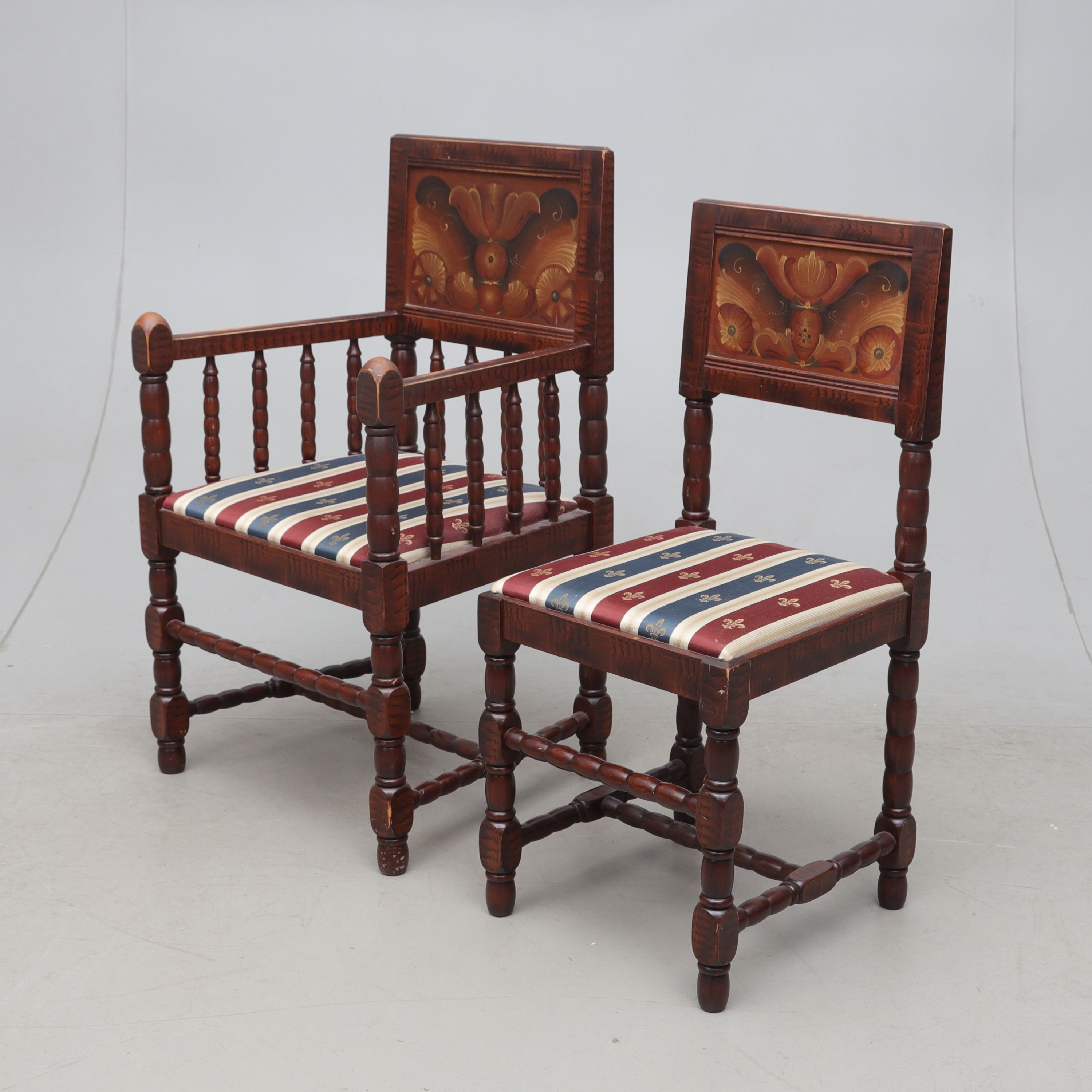 3947689. MATGRUPP, 7 delar, allmoge-stil.
