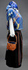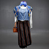 Uppskattad storlek: 36-38 Underkjol, kjol, förkläde, blus och blå väst, hätta, sjal och näverkorg med tyg.