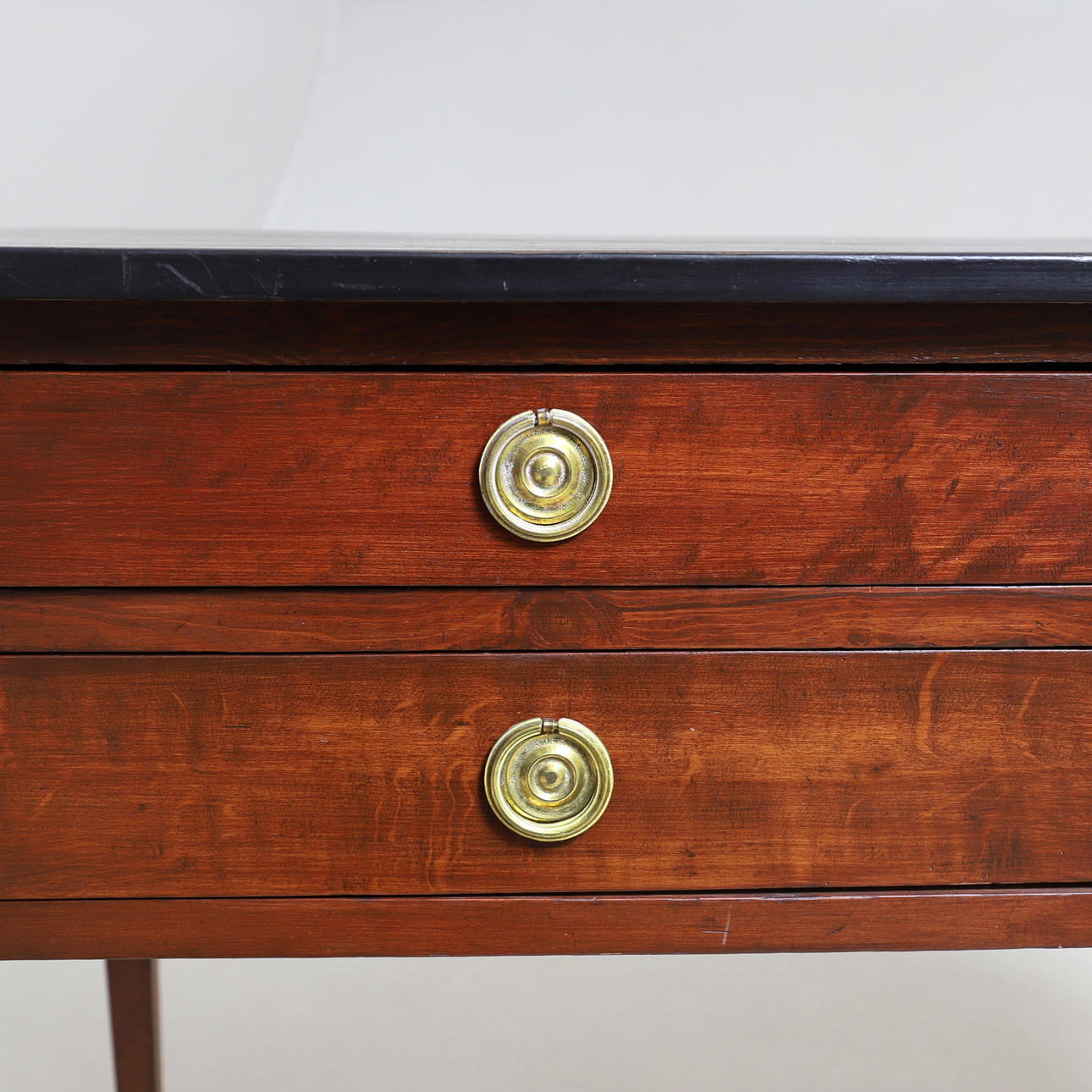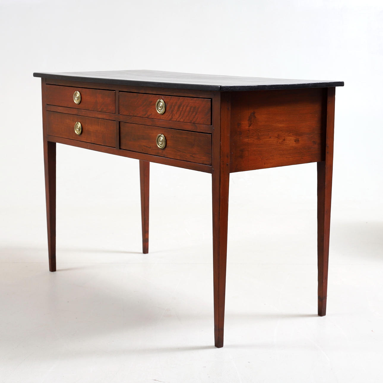 Bemålat trä. Fyra lådor i sarg. Beslag av mässing.