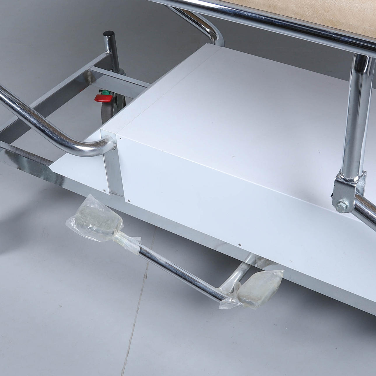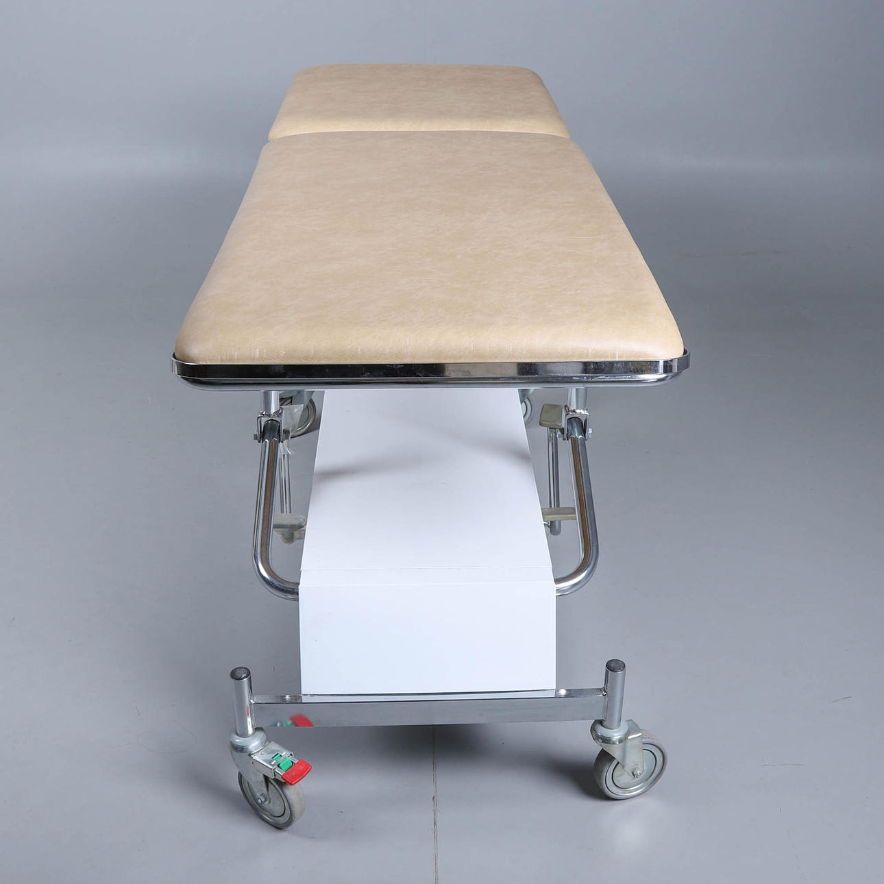 Höj och sänkbar, fällbar ryggdel, låsbara hjul, hållare för pappersrulle (britsskydd).