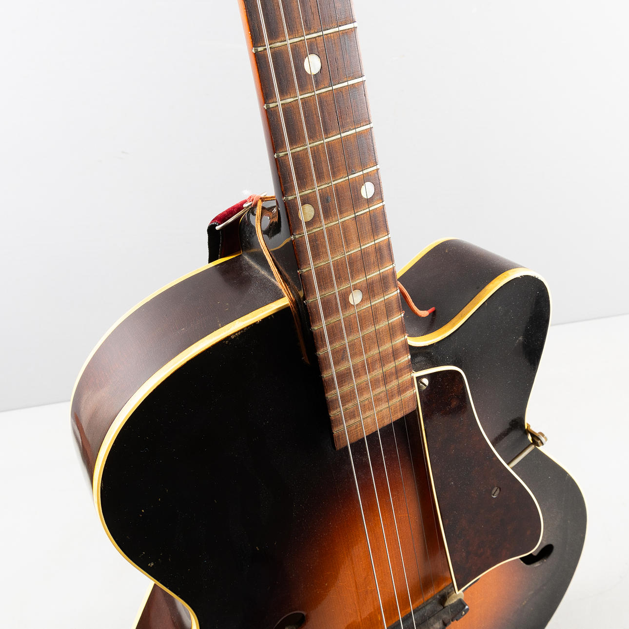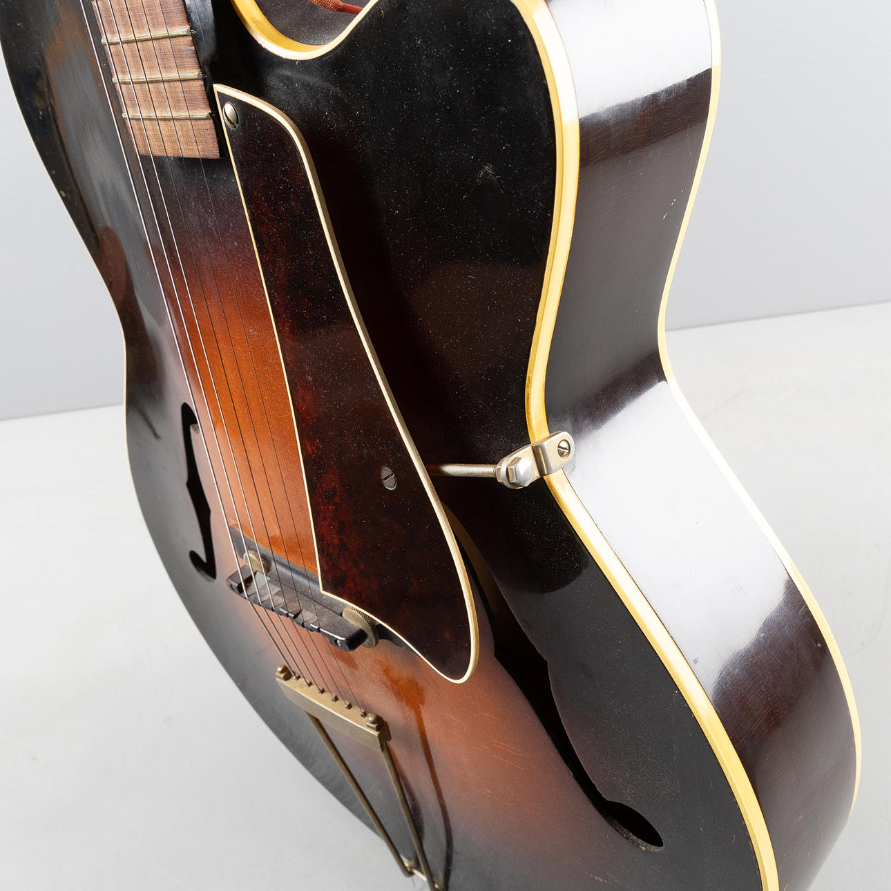 Archtop, sunburst, lock i gran, sarg i lönn, hals i mahogny.