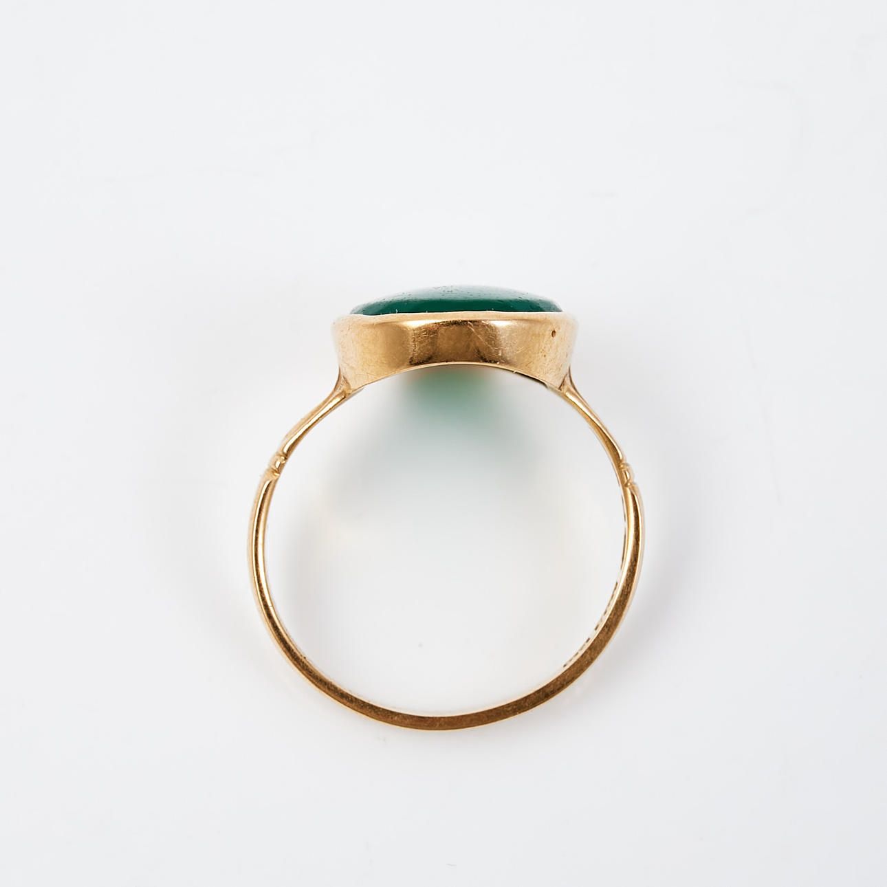3962518. RING, 18 k guld, med grön ädelsten.