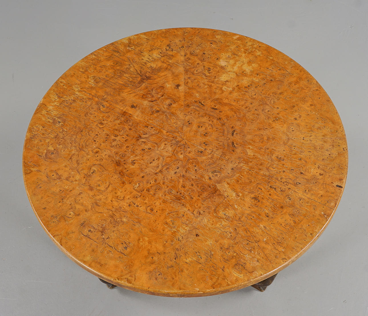 Skiva fanerad med almrot, benställning i bonad björk.