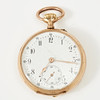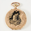Vitemaljerad urtavla, innerlock i metall, baksida med emaljdekor, diameter 36 mm, vikt ca 33 g.