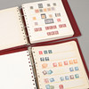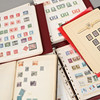 En pärm med blad med blandade frimärken.