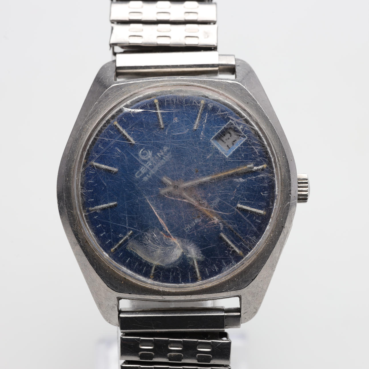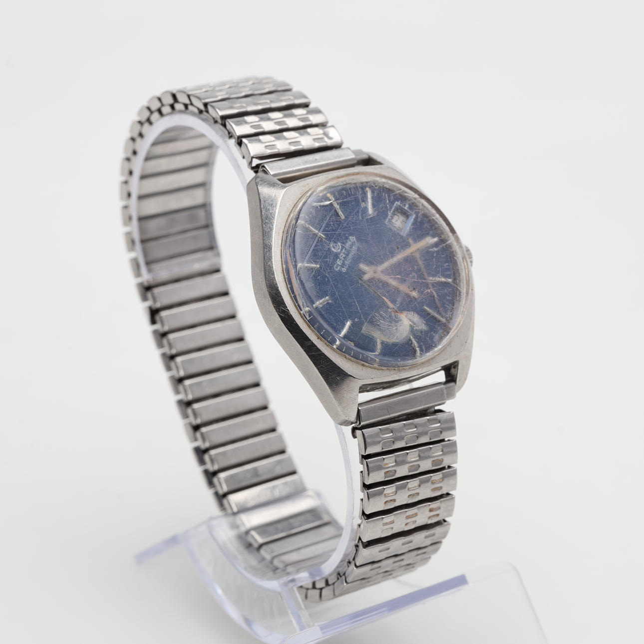 Bruksslitage, urtavla vriden åt fel håll, defekt plastglas, sekundvisare lös. Ingen funktionsgaranti.