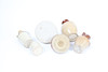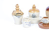 Sparkasse med skadad kant och chip till fot, fontänen med chip till finial, Mortlock-kanna med chip till fot, Watson-kanna med hårfästspricka i botten av handtaget.