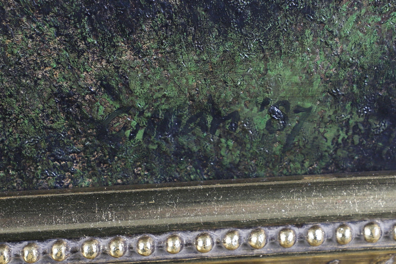 Signerad och daterad `Gillian (19) 87`, olja på duk