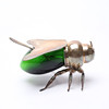 Form av bi. Längd ca 16 cm. Vitmetall samt grön glasmassa.