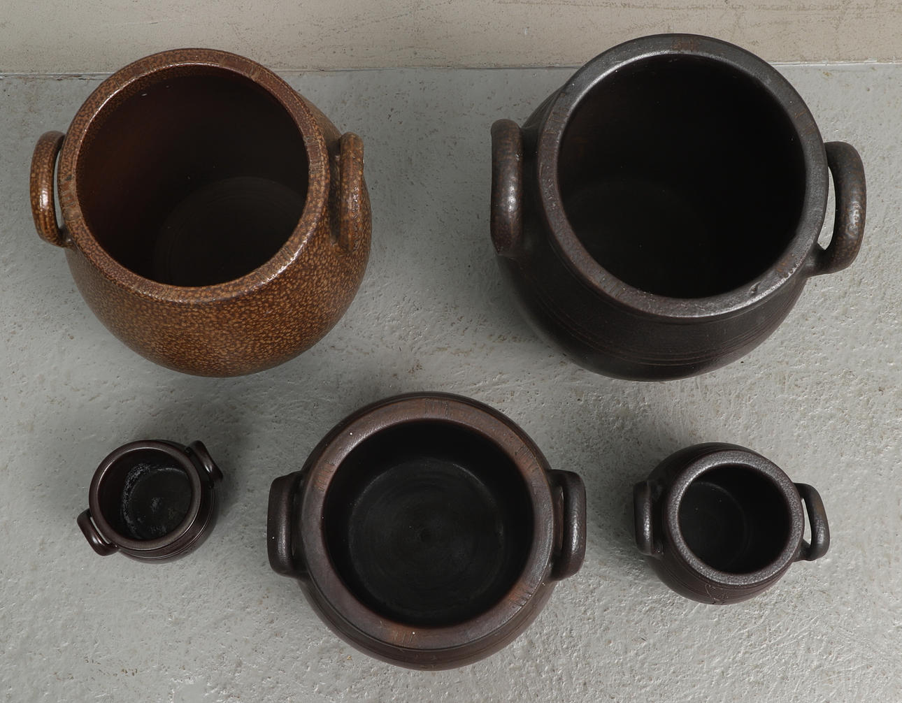 3975016. KRUS, 5 st, ½-8 liter stengods, Höganäs.