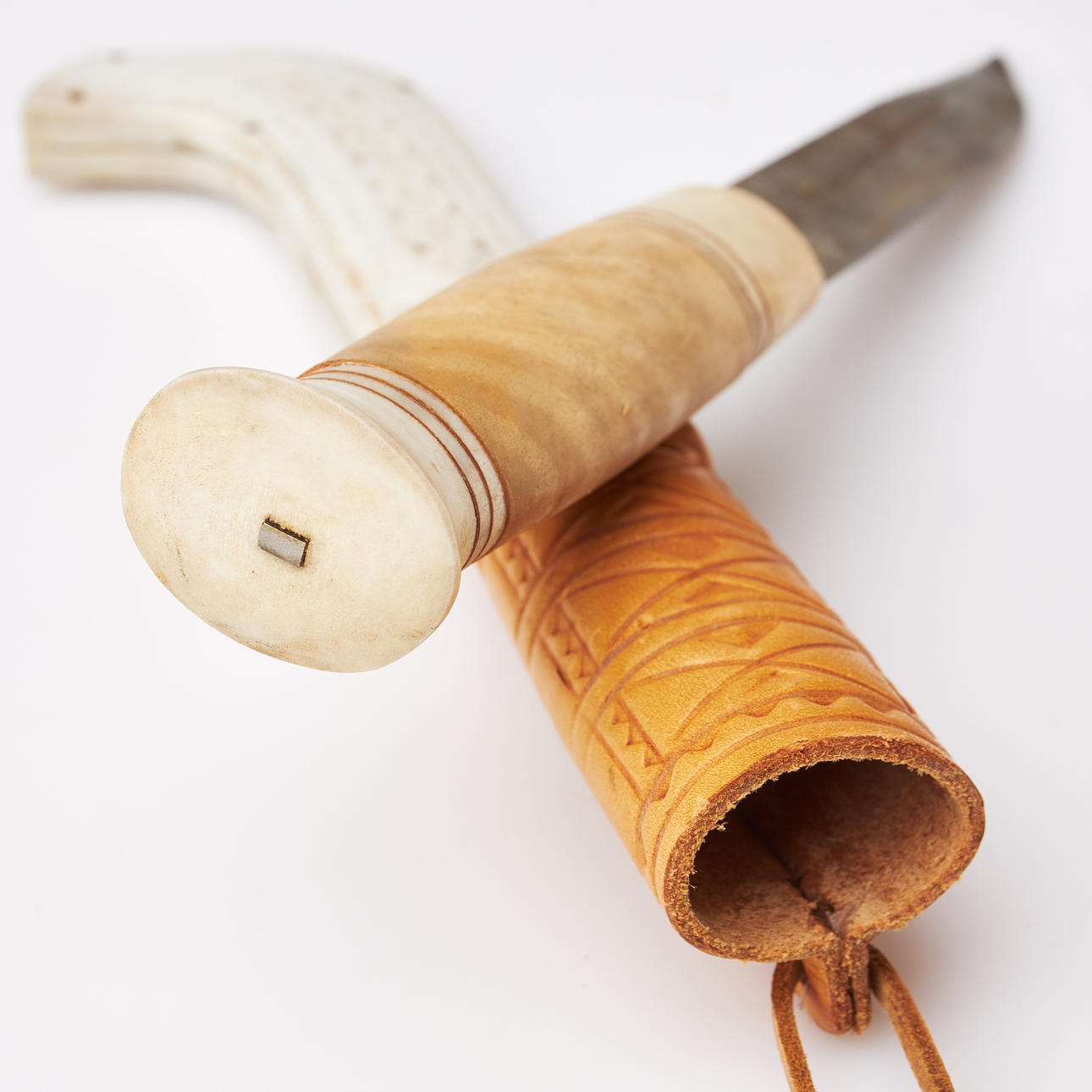 skuren dekor, präglat läder, signerad GL.