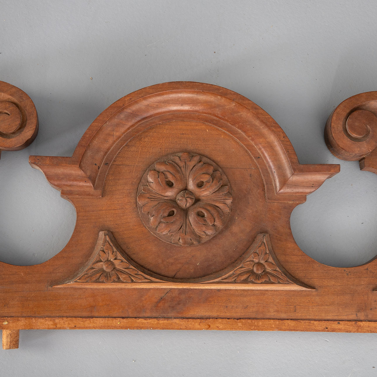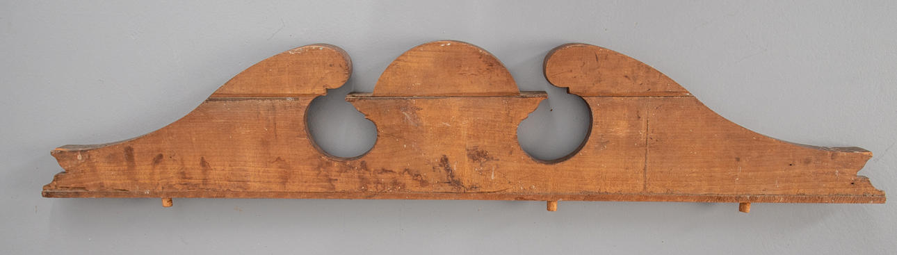 Klipp trä. Central rosett mellan ett uppblåst pediment.