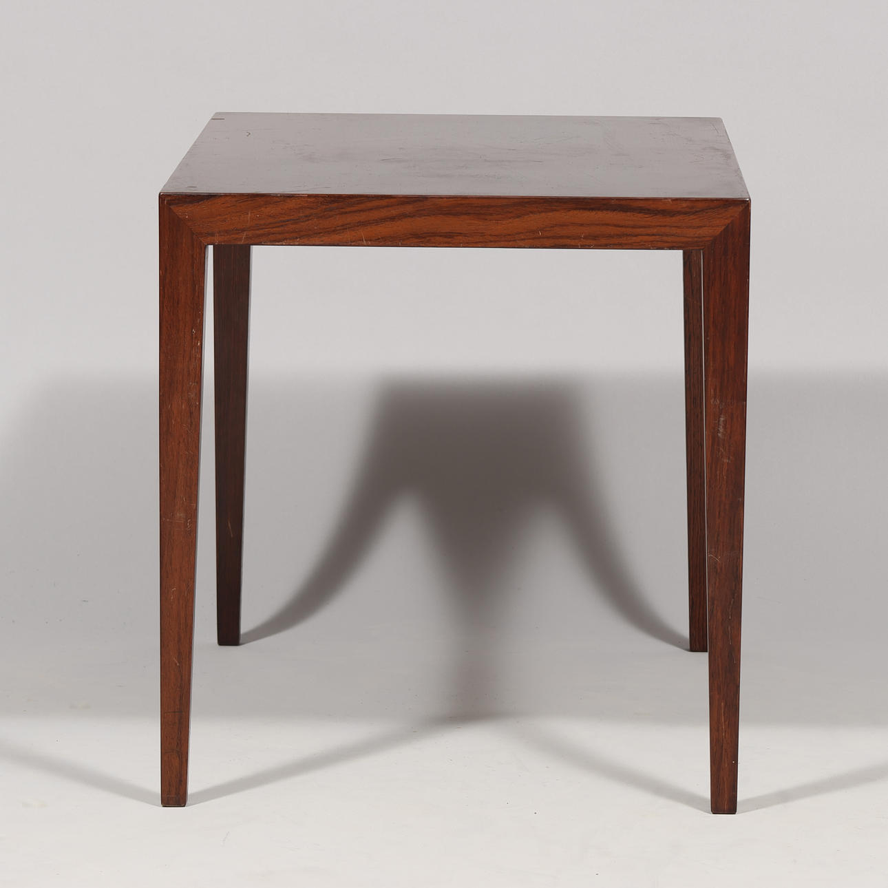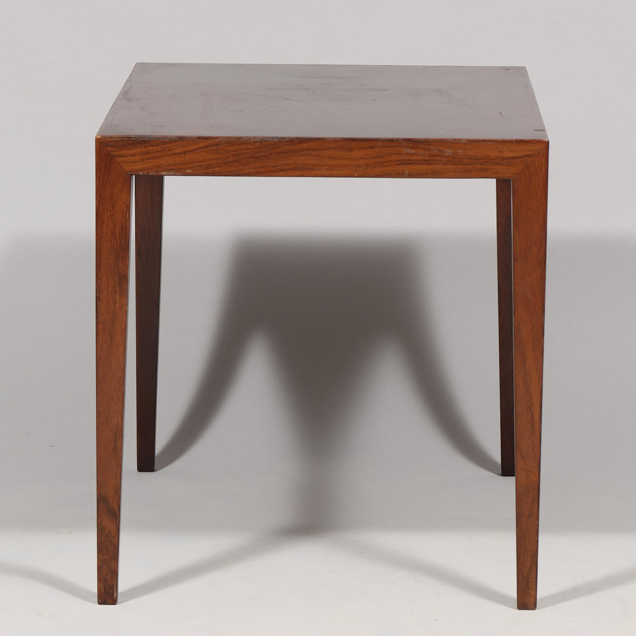 Bord med fanér med rosenträ, Tillverkad av Haslev möbler. ungefär H 50 x 70 x 47 cm.