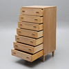 Byrå med 7 lådor. Höjd 112 cm, bredd 58 cm, djup 45 cm.