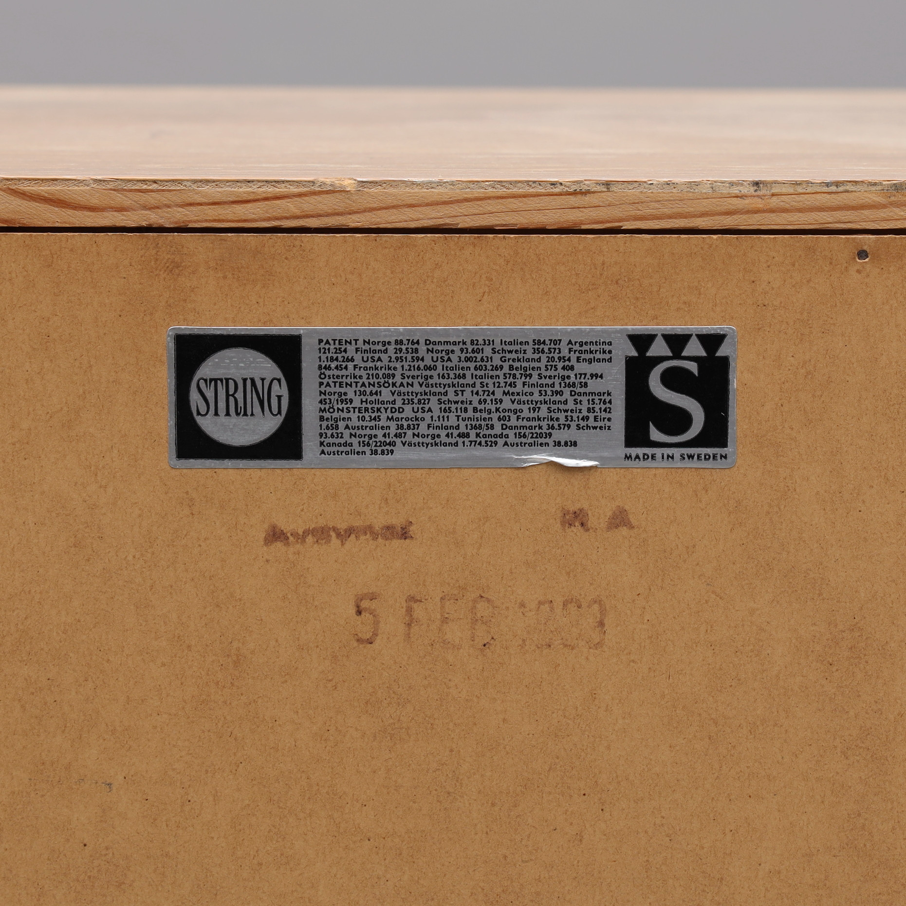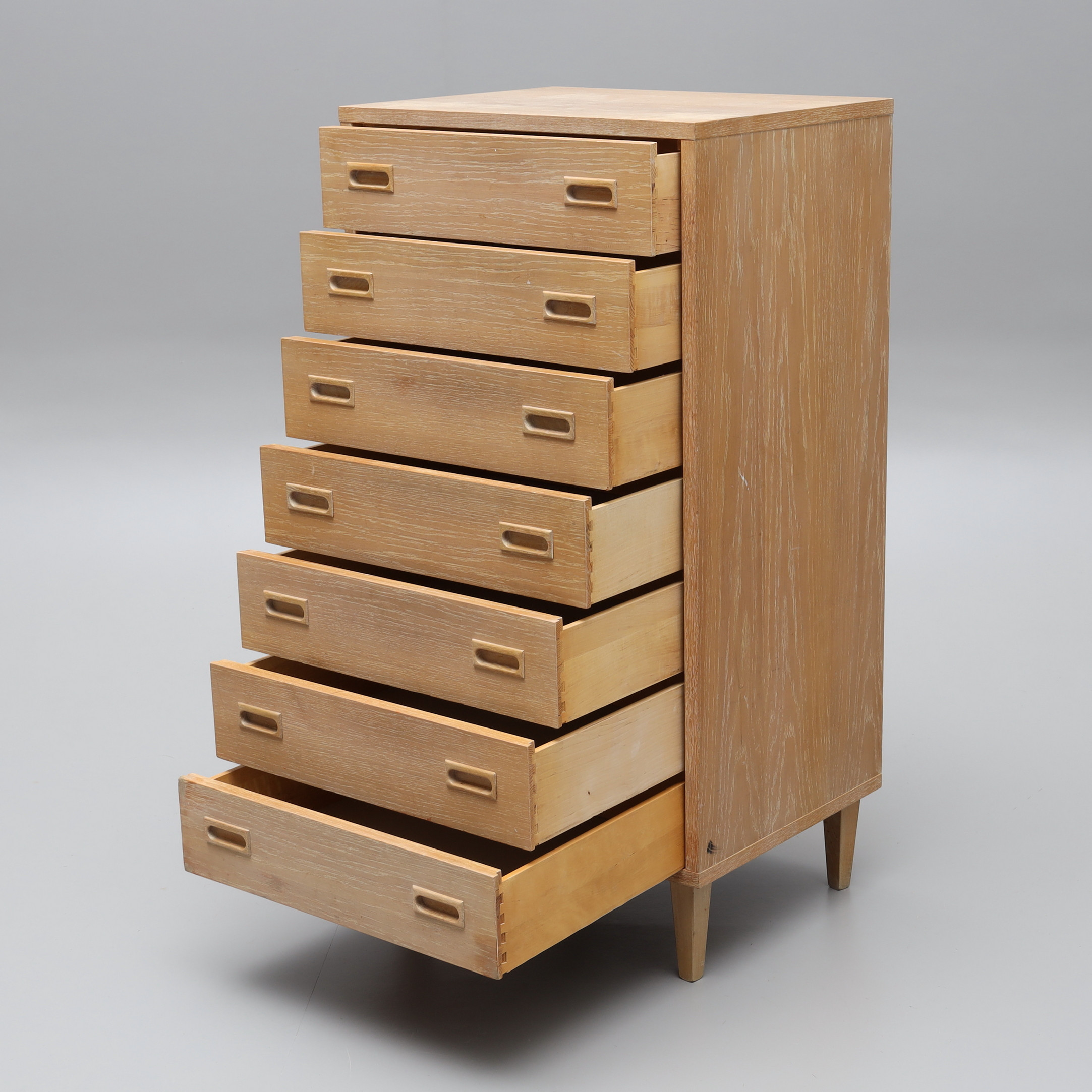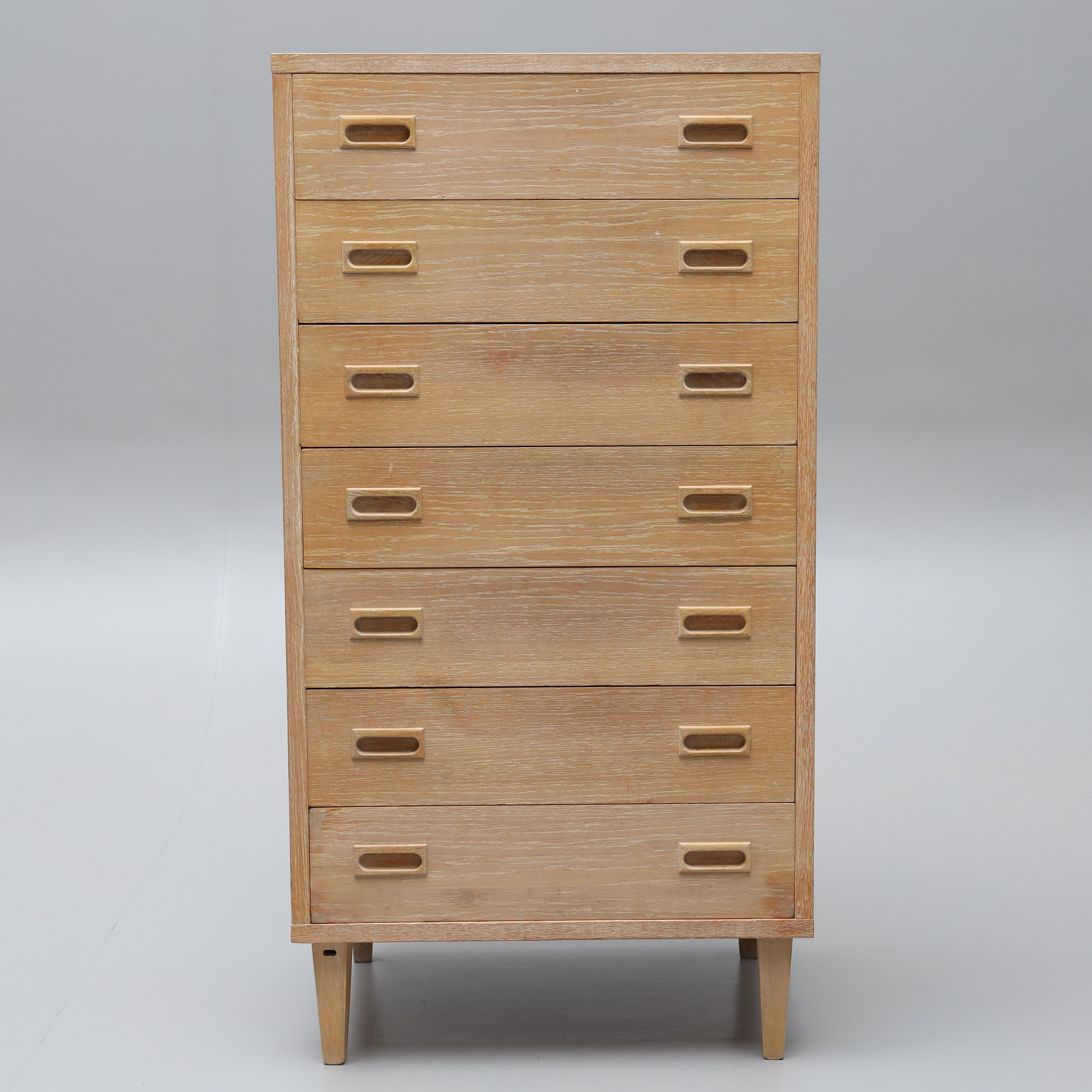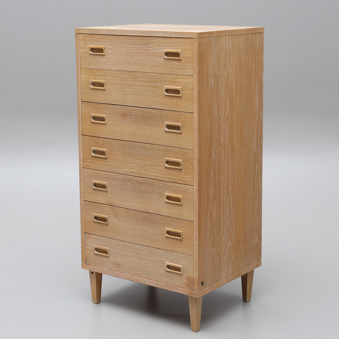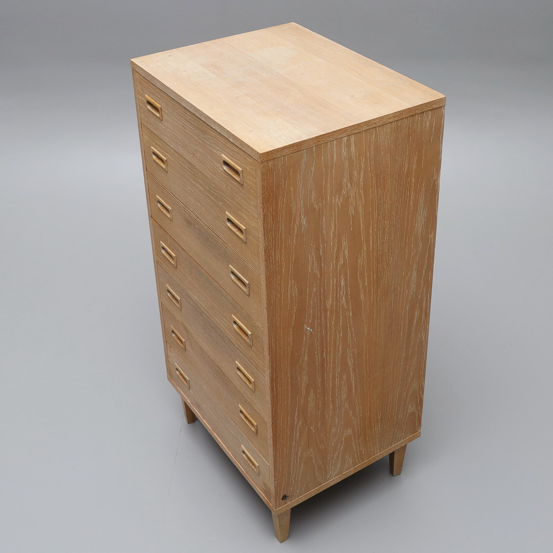 3980807. BYRÅ, String, kalkad ek, 7 lådor, etikettmärkt String.