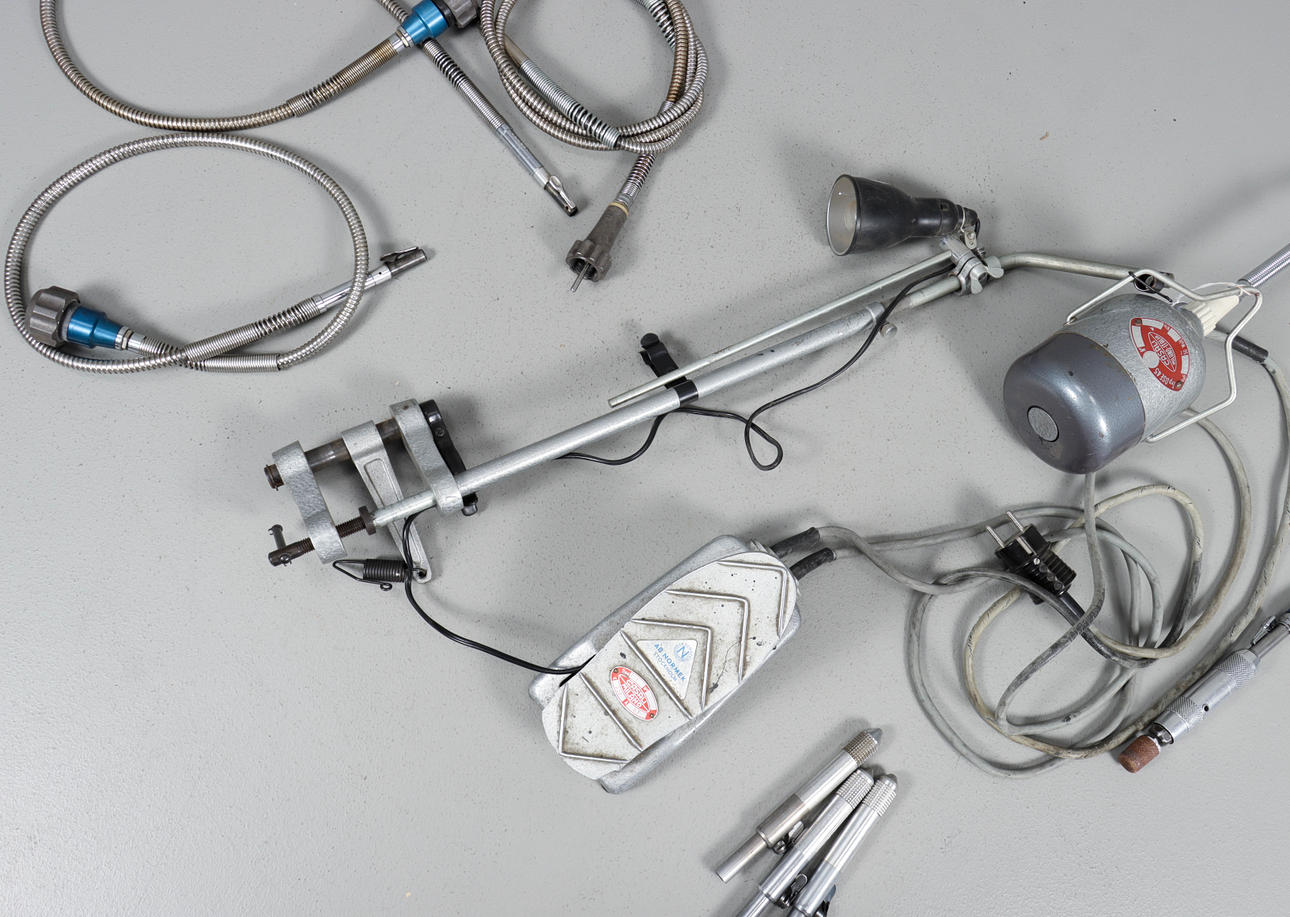 Nr 878, såld av AB Nordmek Stockholm. Med stativ, fotpedal och tillbehör.