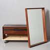 Bänk med lådor: Bredd 116,5 cm. Djup 45,5 cm. Höjd 45,5 cm. Spegel: Bredd 83,5 cm. Höjd 125,5 cm.