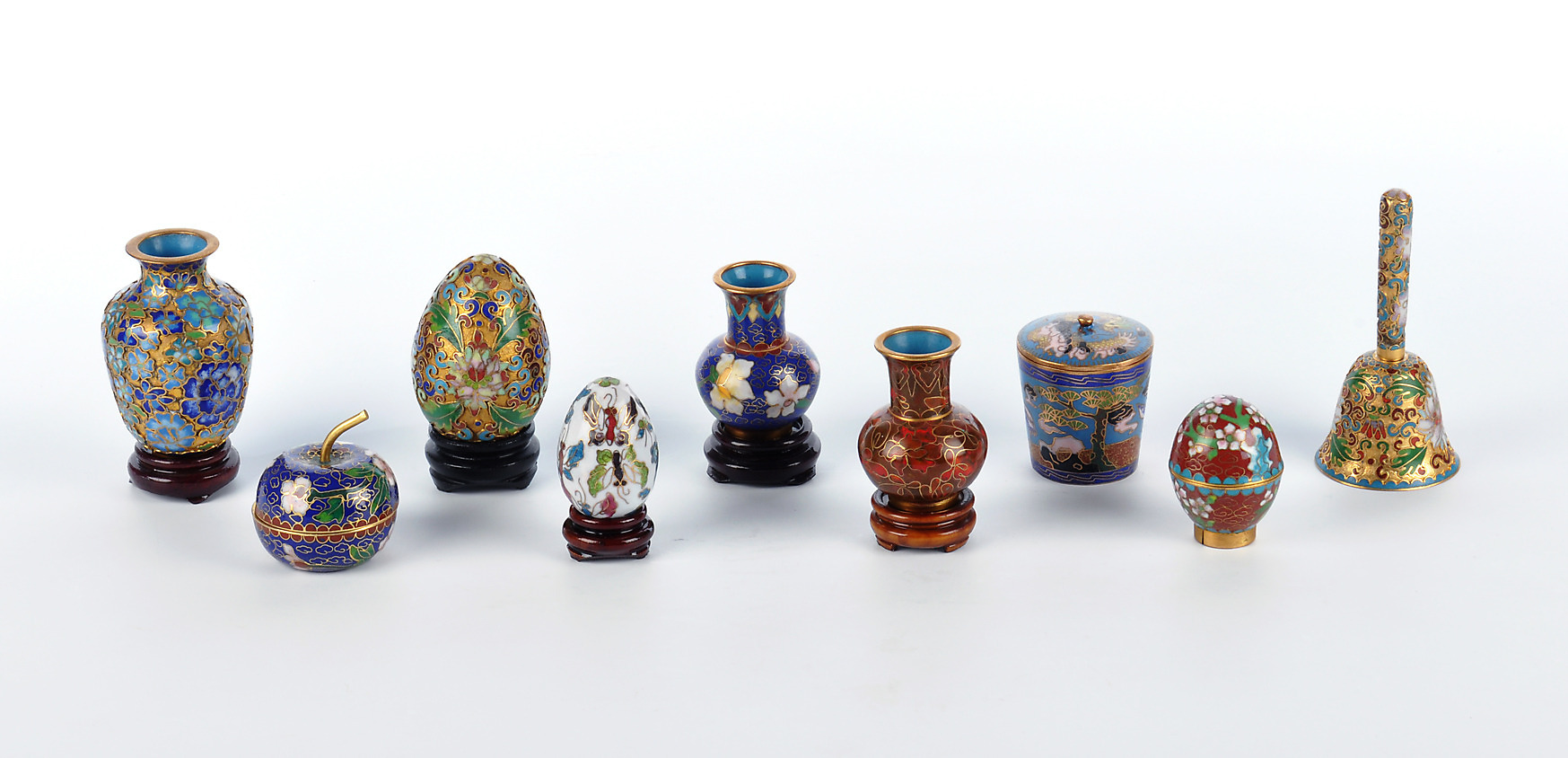 398468. CLOISONNE / CHAMPLEVE. En samling miniatyrer, 9 objekt.