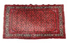 med röd markuppsättning med repeterande motiv, 196cm x 138cm.