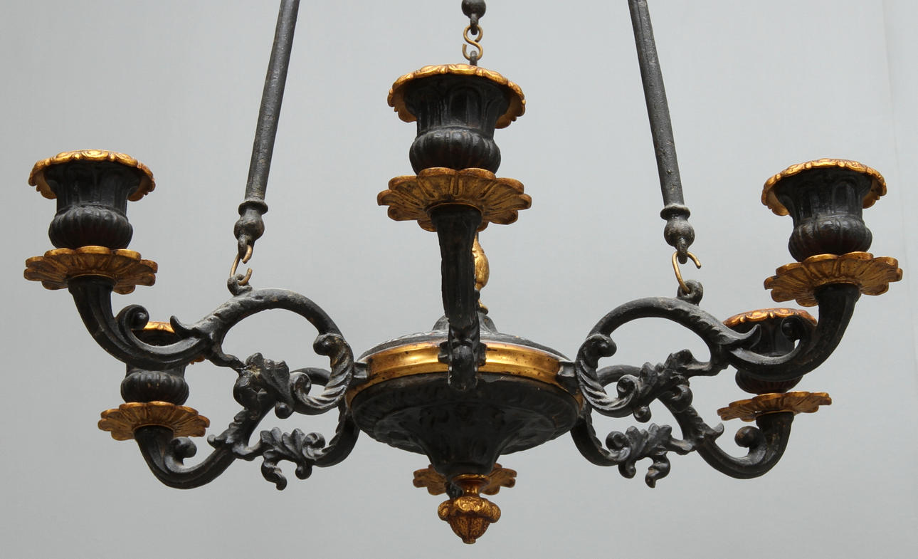 För 6 ljus. Bronserad dekor. Total höjd enlig bild ca 70 cm.