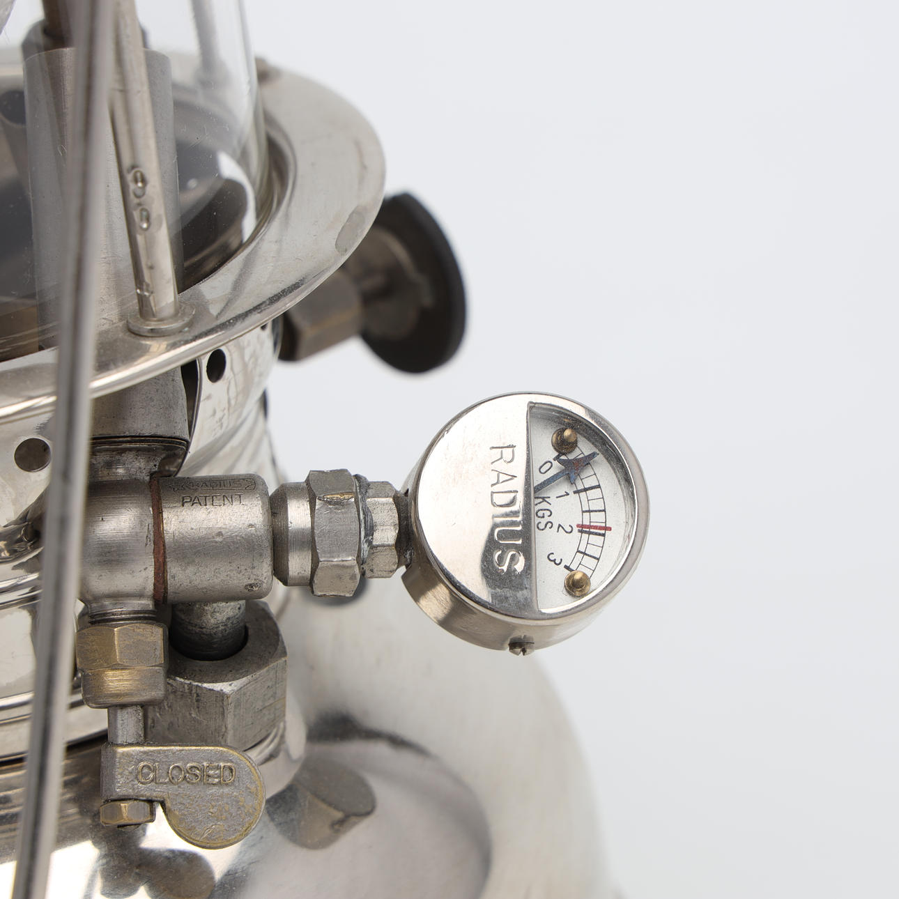 Höjd ca 32 cm, exklusive handtag. Vit originalskärm. Tryckmätare, snabbtändare, tankmätare.