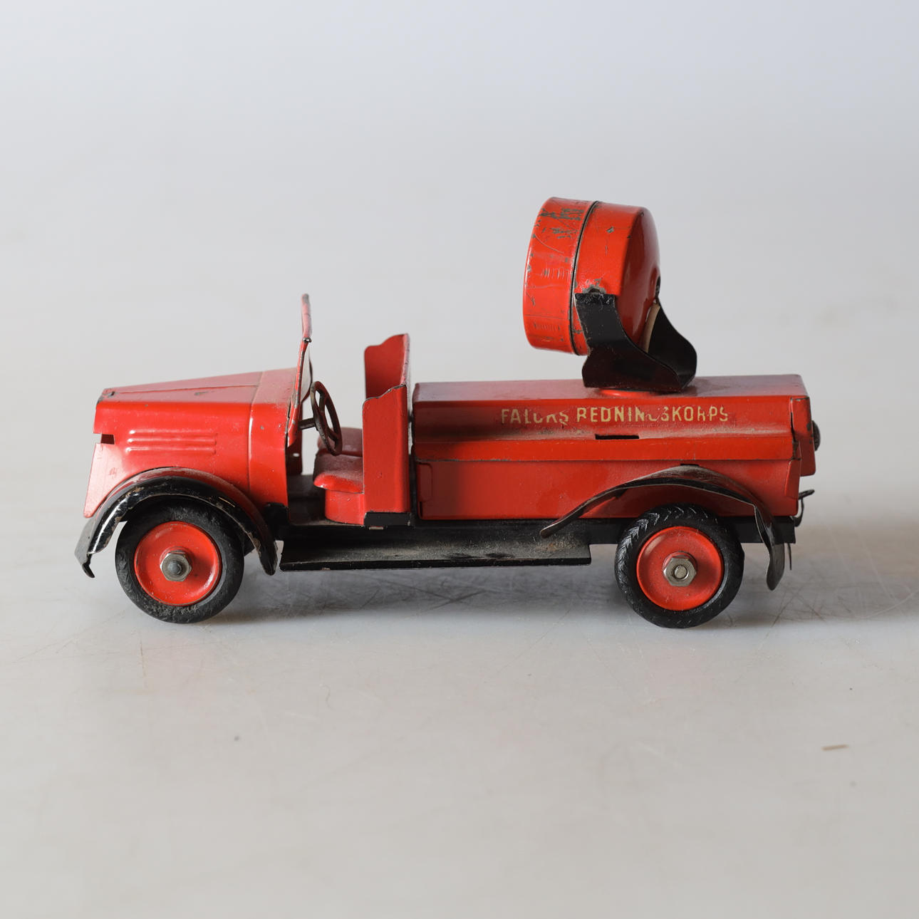 Bruksslitage. Repor, fläckar och bucklor. Del saknas.