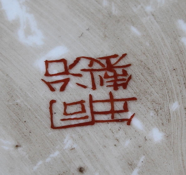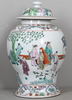 Dekorerad med figurscen och stiliserade blomster. Höjd 44 cm.