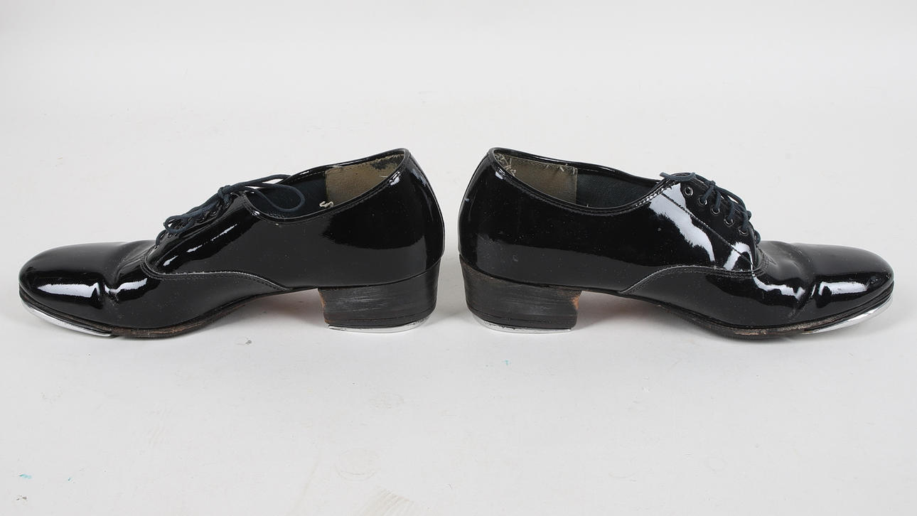 Svartlackerade skor med klack. Medföljande extra Tele Tone Taps.