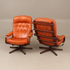 Höjd cirka 95 cm, sitthöjd cirka 39 cm. Snurrfåtöljer.
