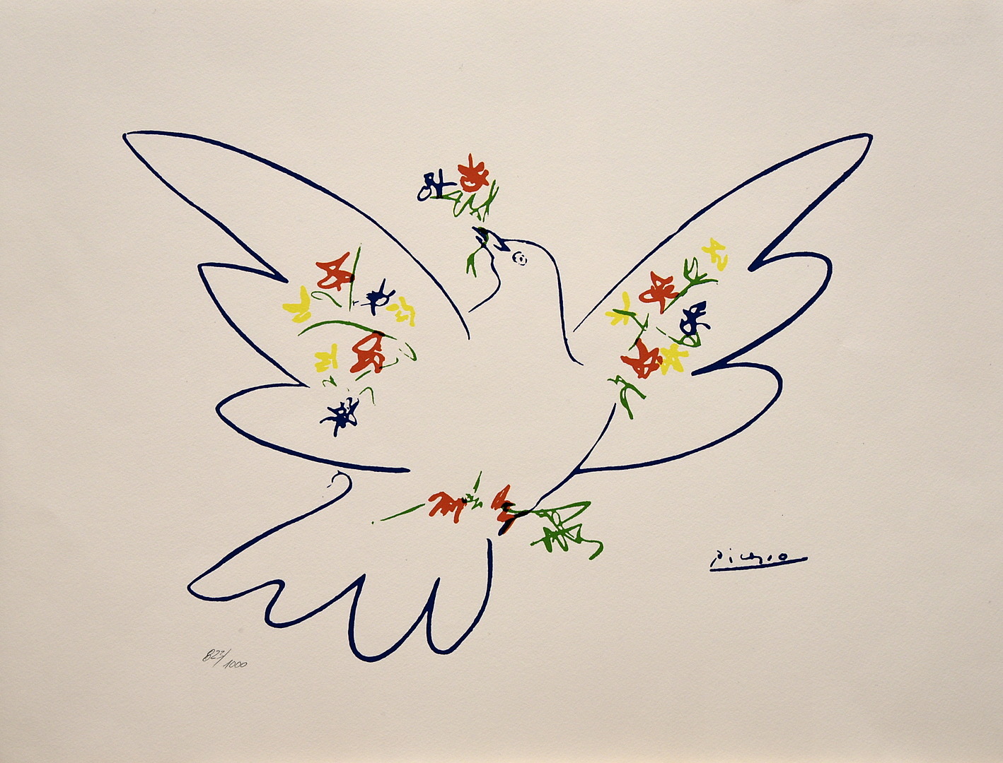 399939. PICASSO, PABLO (1881 MALAGA - 1973 MOUGIN). EFTER. fred duva med blommor.