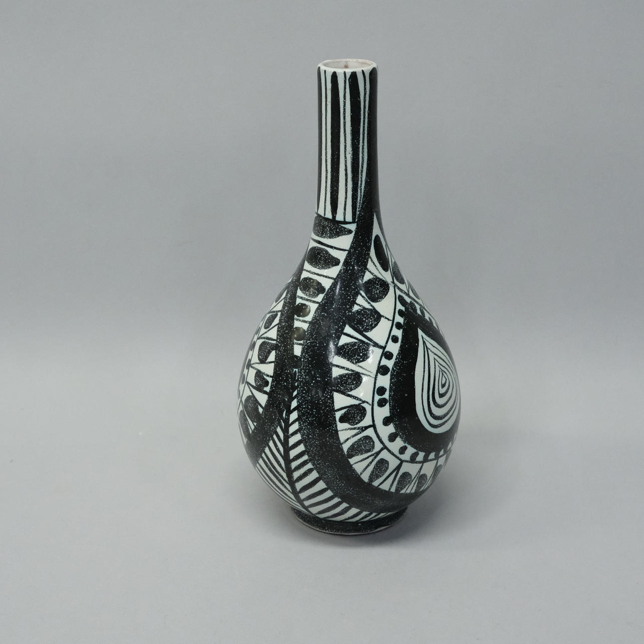 Mönster i svart och vitt, höjd 21cm, signerad.