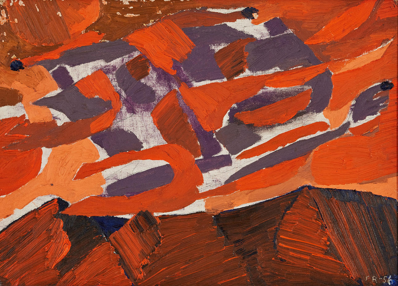 Olja på duk uppfodrad på pannå, 35 x 49 cm. Signerad T.R -56.